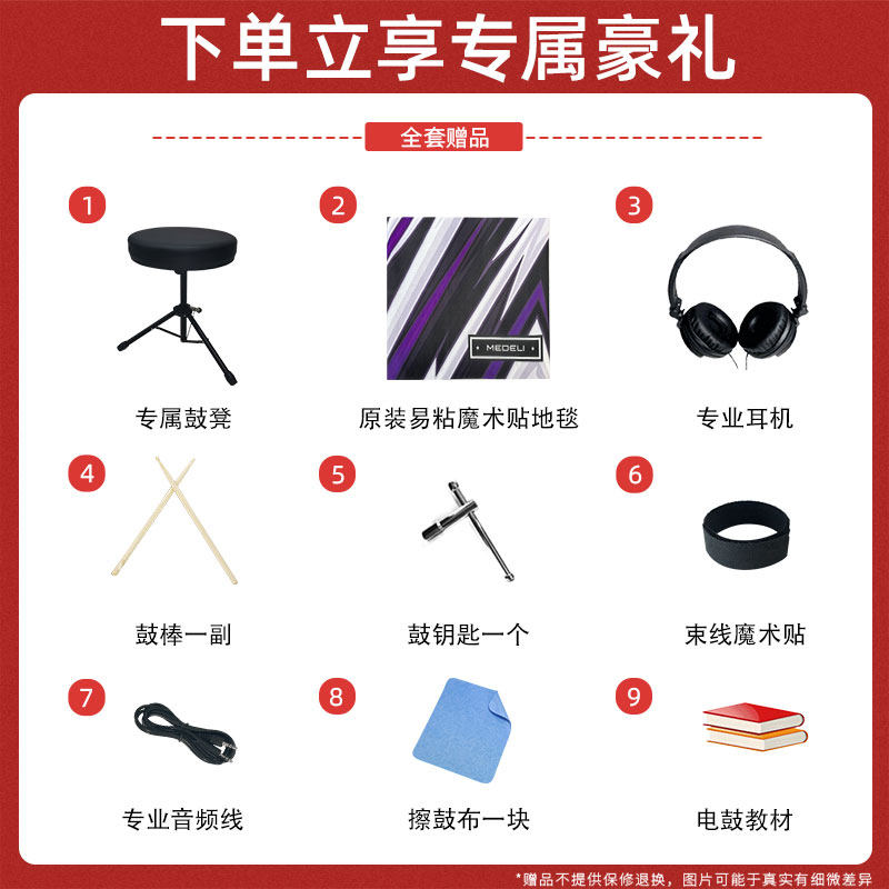 蓝牙初学者电子鼓折叠式 美得理魔鲨MZ537电子鼓入门必备款 双中文
