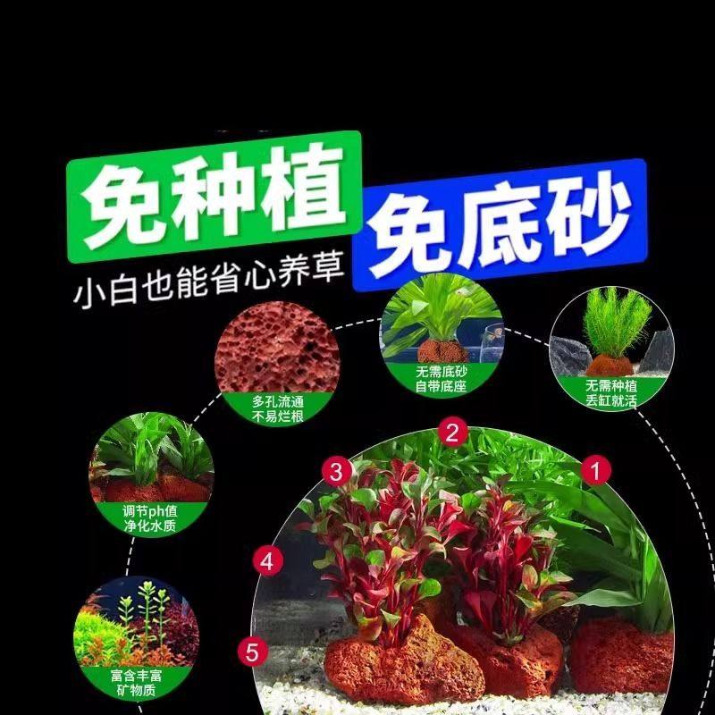 水草植物真草造景火山石鱼缸增氧水草新懒人装 饰造景净化水质生态