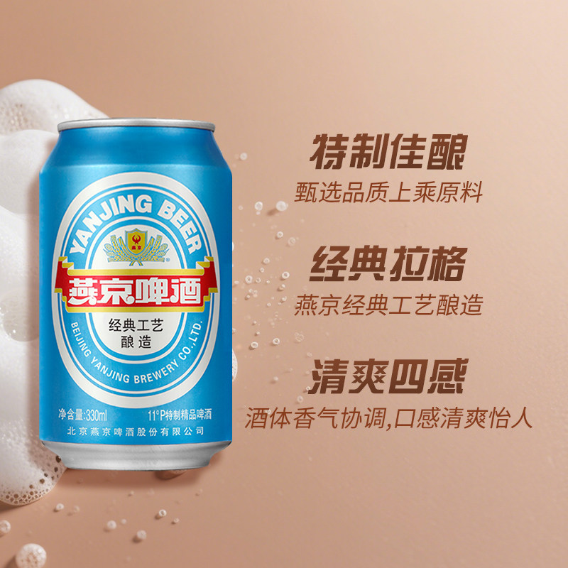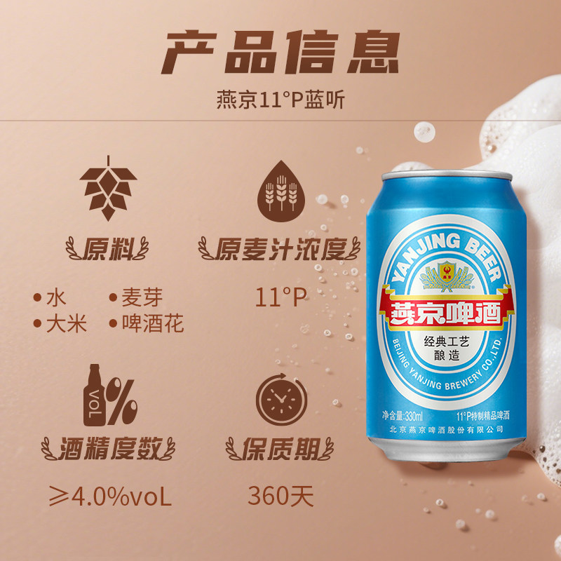 蓝听11°P清爽黄啤酒330ml 包邮 24听 啤酒正品 罐装 燕京啤酒