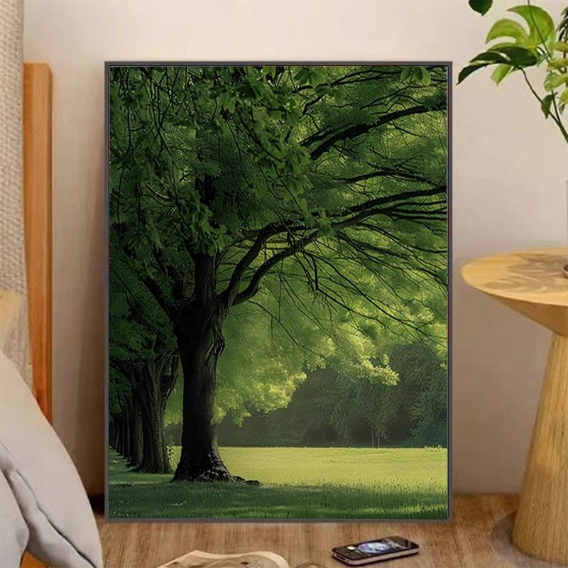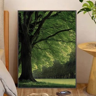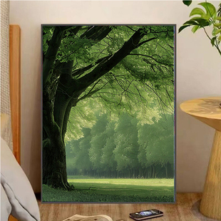 绿色夏日光景治愈系装 饰画森林树丛清新仿油画风景卧室客厅摆挂画