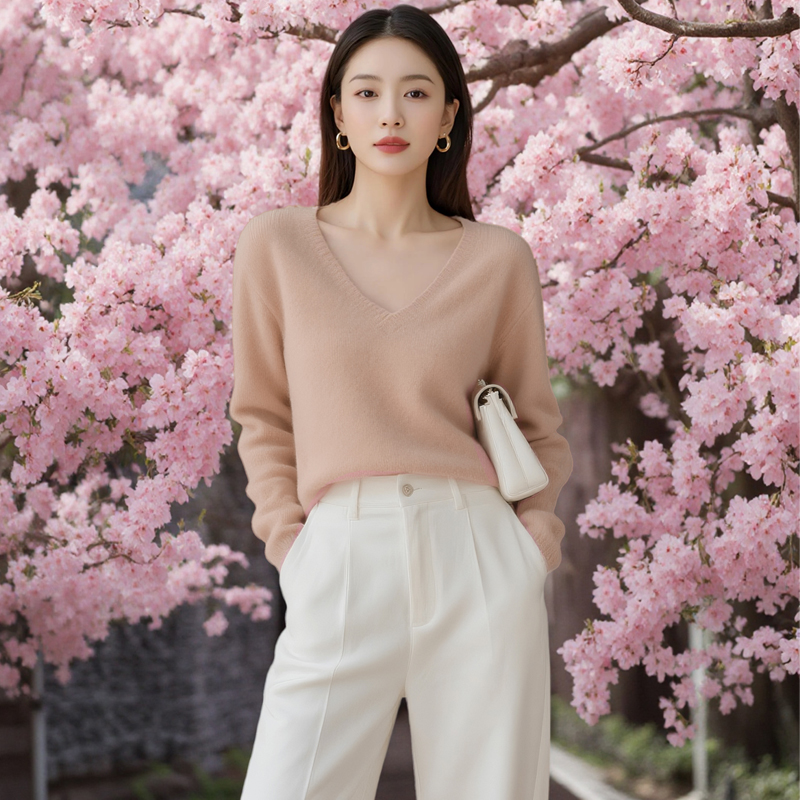 鄂尔多斯市女V领宽松针织打底衫 内搭上衣秋冬