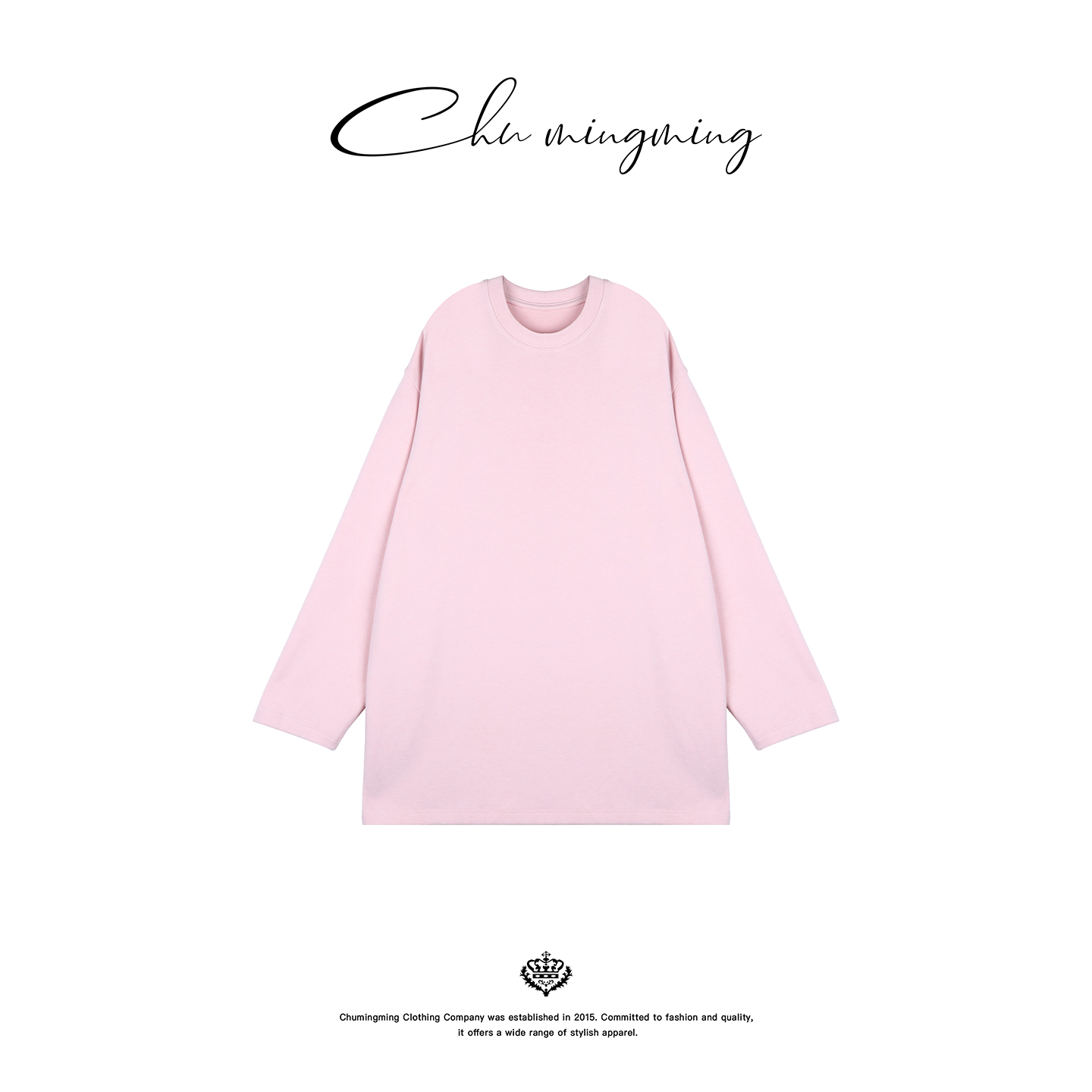 新款 CHU楚妞 T恤2025秋冬季 320G重磅真丝棉长袖 女软糯上衣 粉米