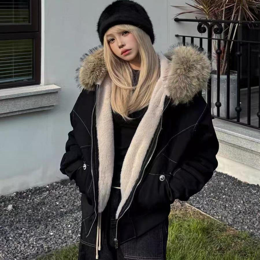 加绒加厚收腰时尚 冬季 洋气女士棉袄外套 女派克棉服女短款 2024新款