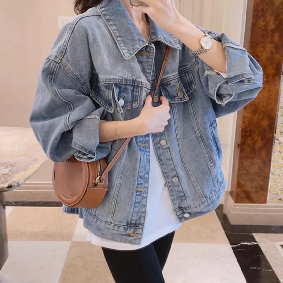 夹克上衣 工装 休闲气质牛仔外套女春秋百搭2025新款 宽松设计感短款