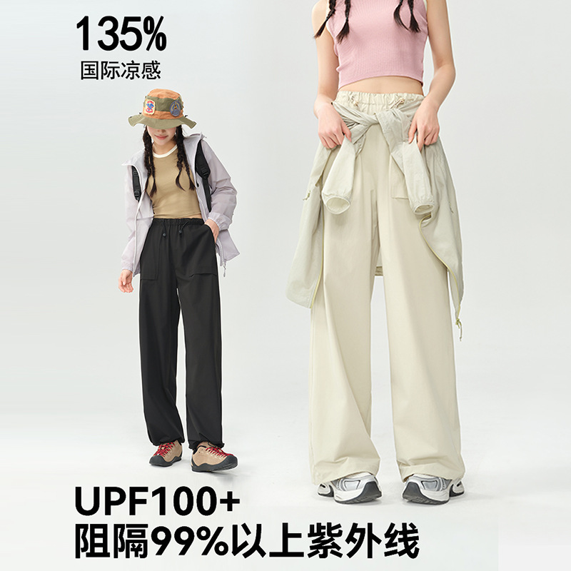 裤 休闲宽松抽绳阔腿降落伞裤 女款 轻薄户外徒步登山冲锋裤 夏季 工装
