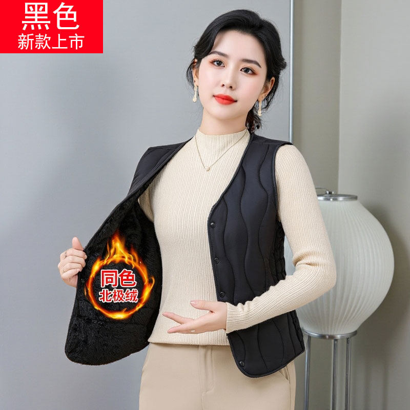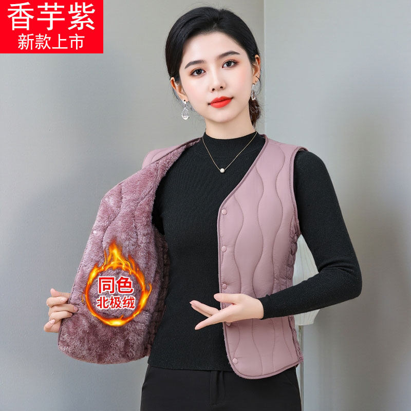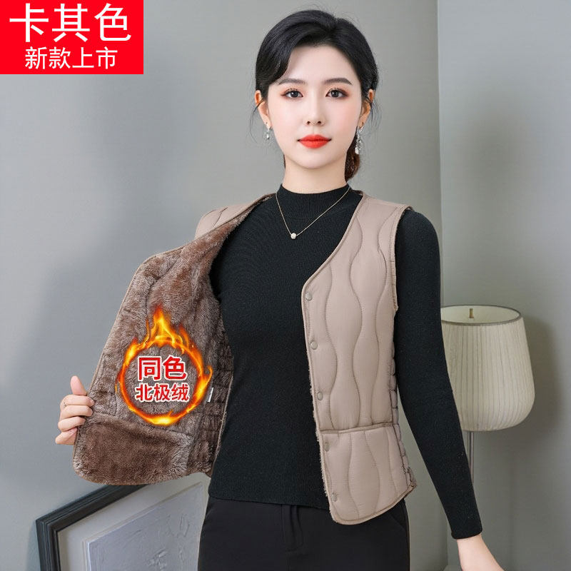 v领坎肩百搭内胆 显瘦背心短款 秋冬新款 加绒保暖羽绒棉马甲女修身