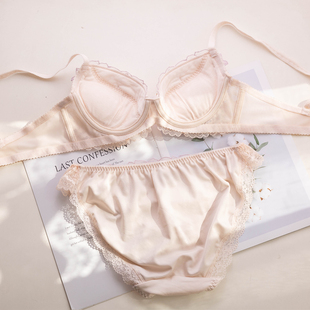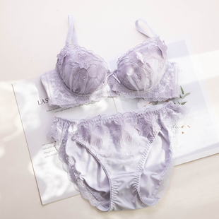 好奇蜜斯无钢圈内衣女聚拢小胸显大蕾丝文胸罩套装 性感夏防下垂白