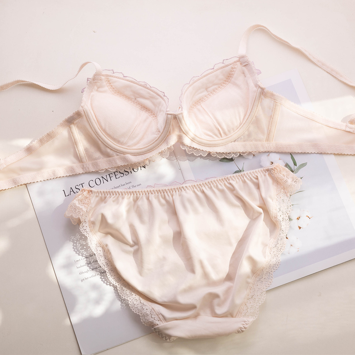 好奇蜜斯蕾丝法式 白三角杯小胸 内衣女美背性感夏薄纯欲文胸罩套装