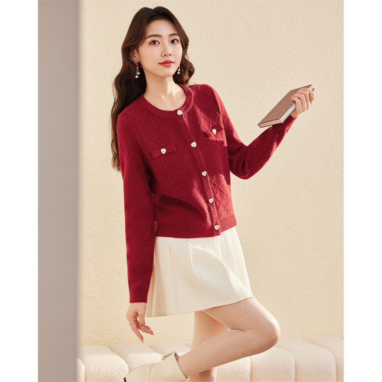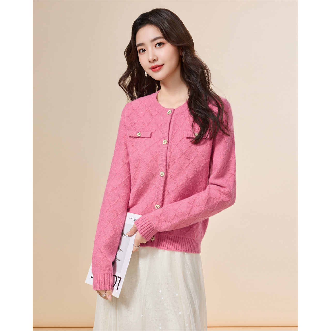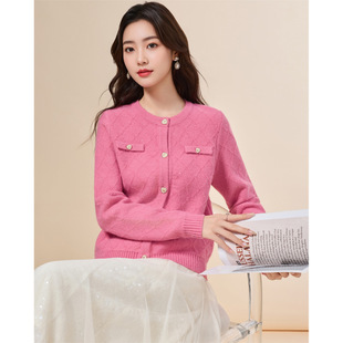 小香风通勤气质百搭菱格设计毛织外套 法式 IEF 爱依服2025秋冬新款