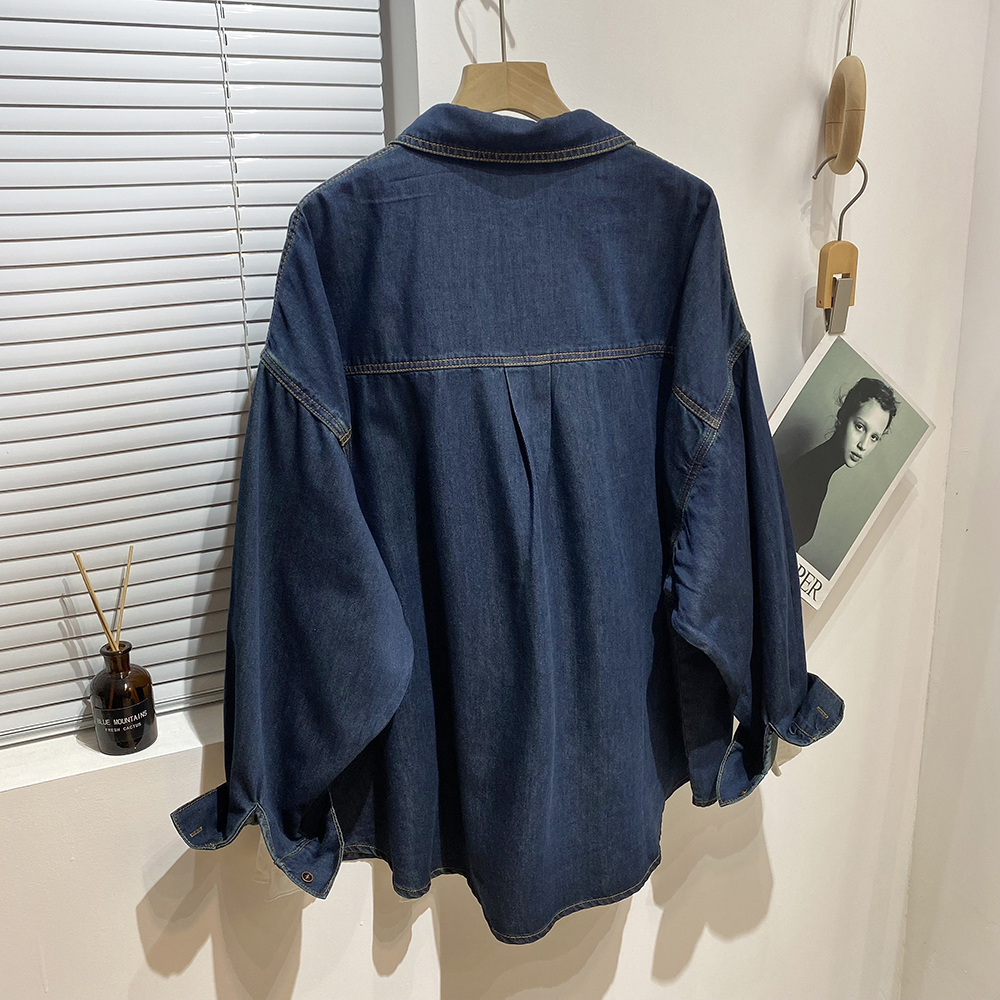 外套 宽松慵懒风遮屁股衬衣外穿薄款 复古蓝色软牛仔衬衫 女春秋长袖