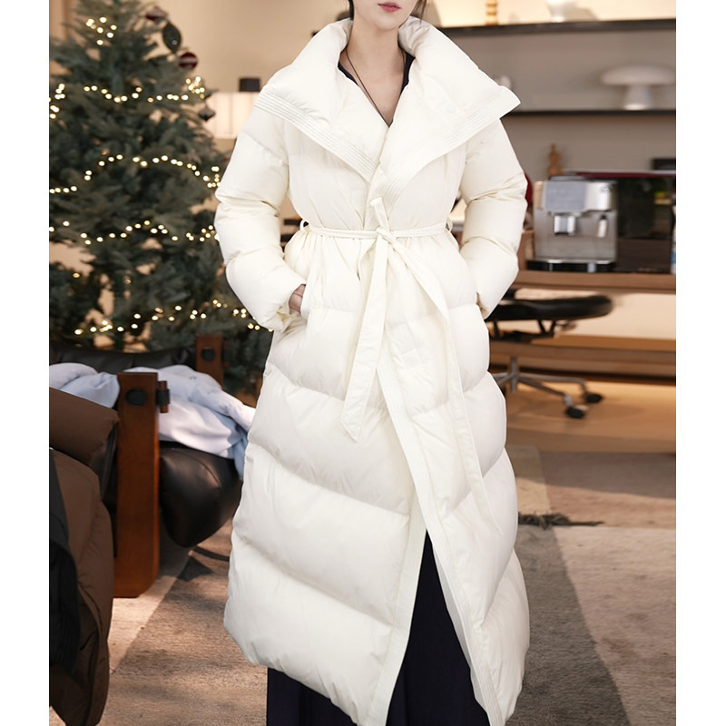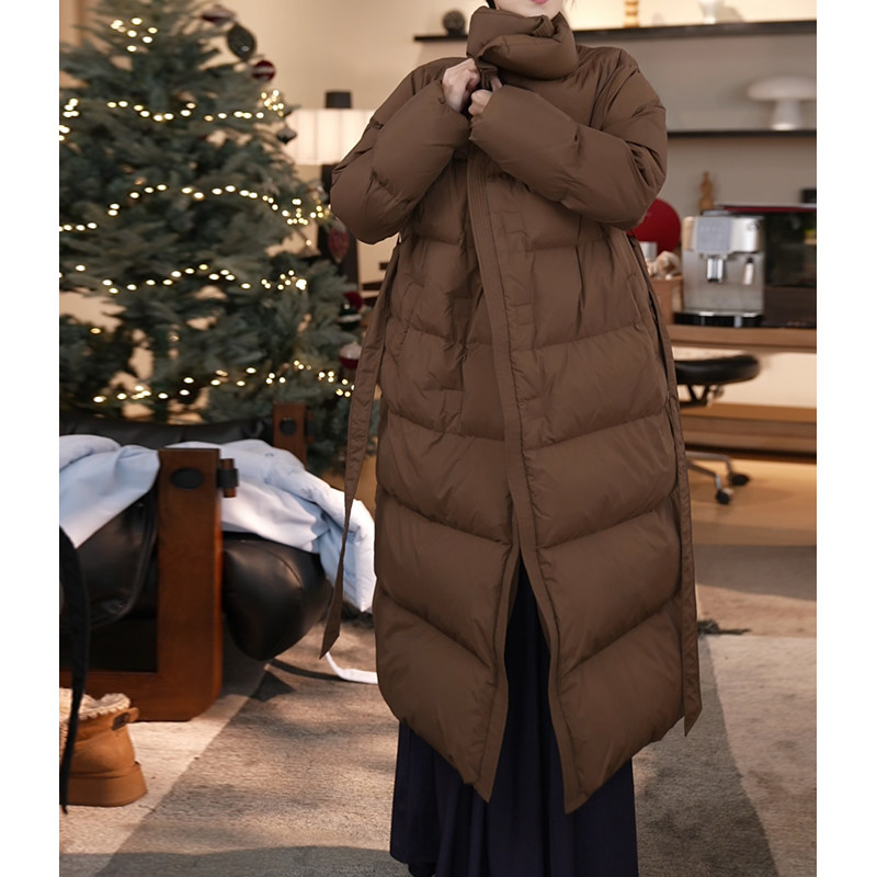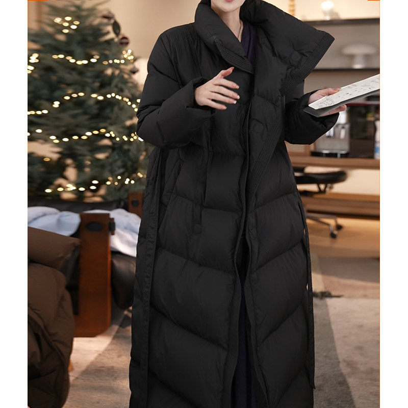 外套 过膝收腰加厚立领泡芙羽绒服女冬季 90白鸭绒 张七七黑色长款