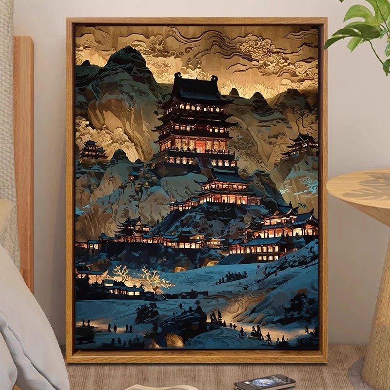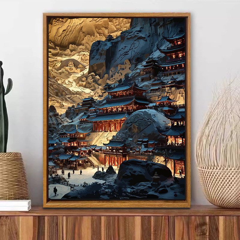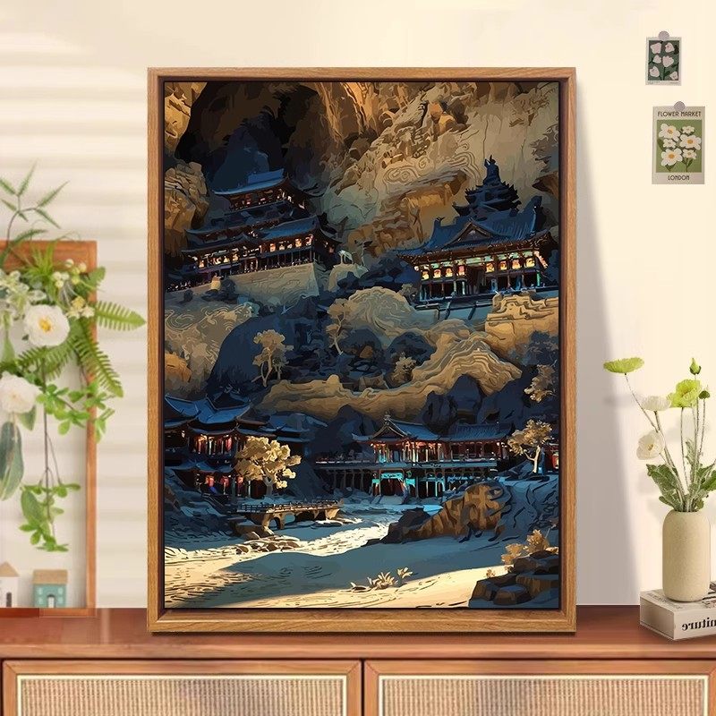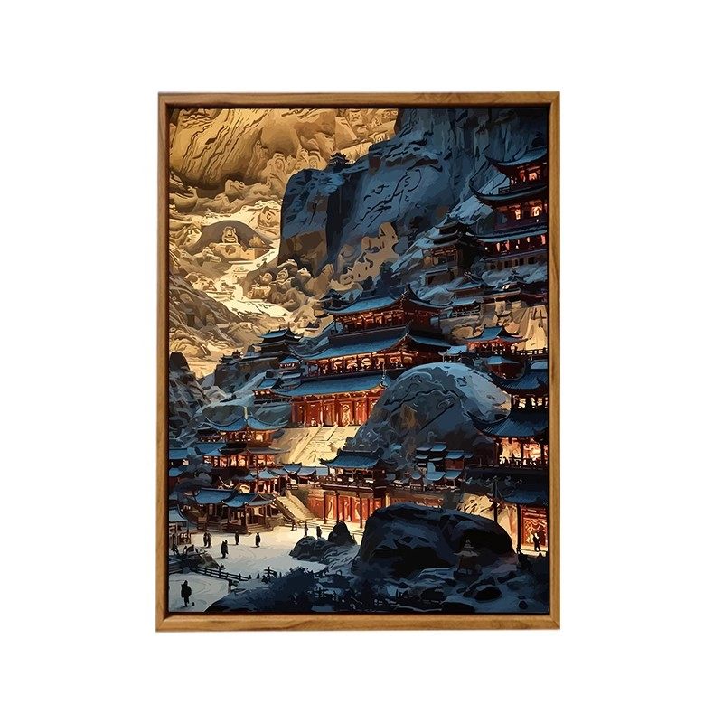中国风敦煌莫高窟装 饰画成品仿油画风景建筑高级感卧室客厅摆挂画