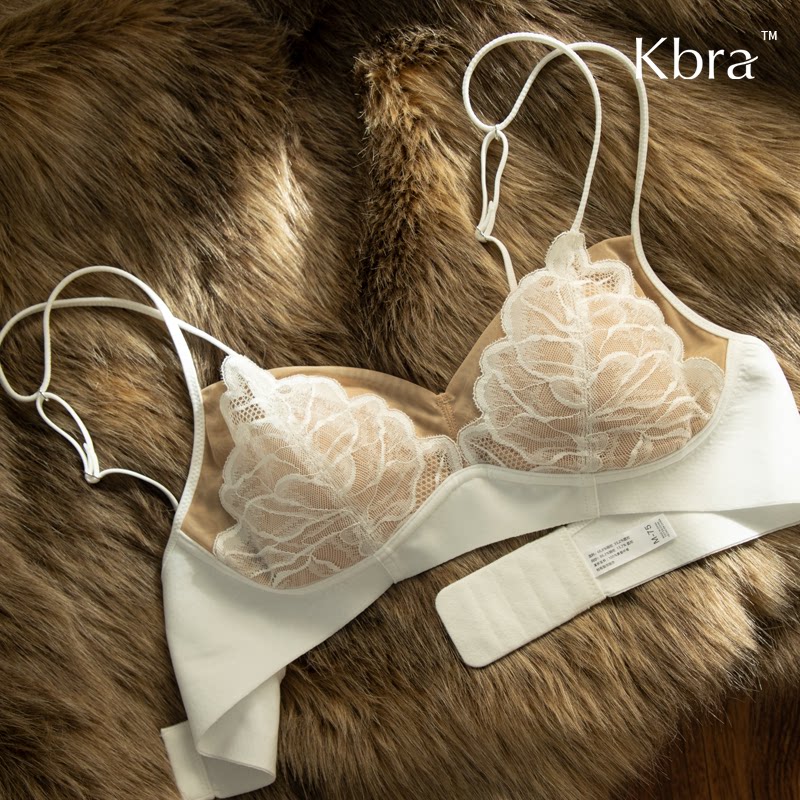 Kbra法式 超薄蕾丝内衣夏小胸微聚拢收副乳防下垂文胸细肩带美背