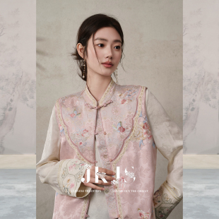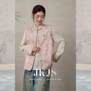 国风盘扣马甲外套立领中式 新中式 马夹女时髦洋气 粉黛轻衣 JKJS