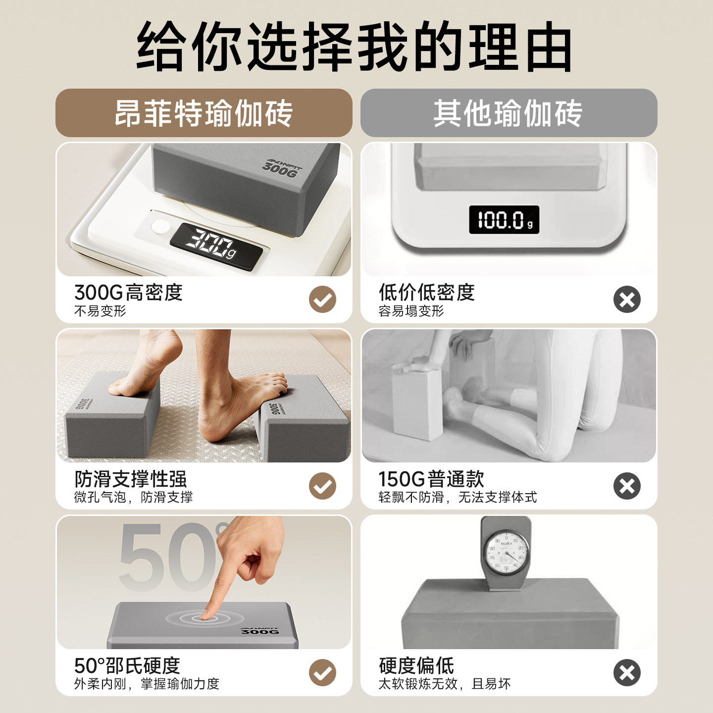 瑜伽砖男士 成人专用高密度300g足弓训练砖健身直腿练小腿肌肉神器