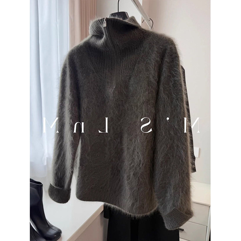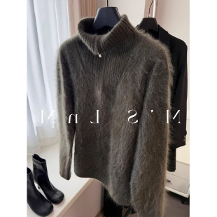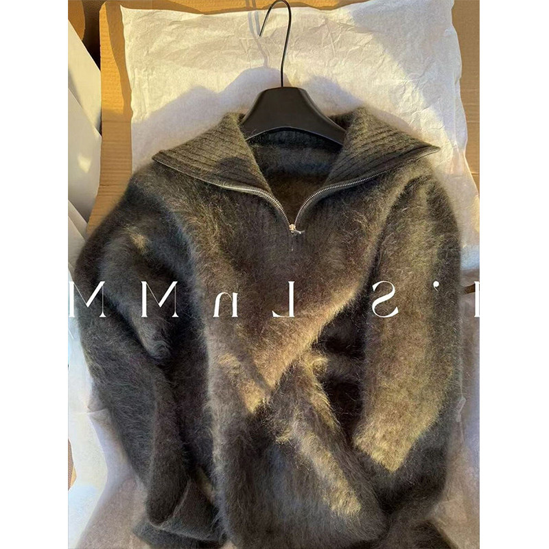 欧货老钱风绿色半拉链毛衣女秋冬高级感软糯翻领针织衫 内搭上衣厚