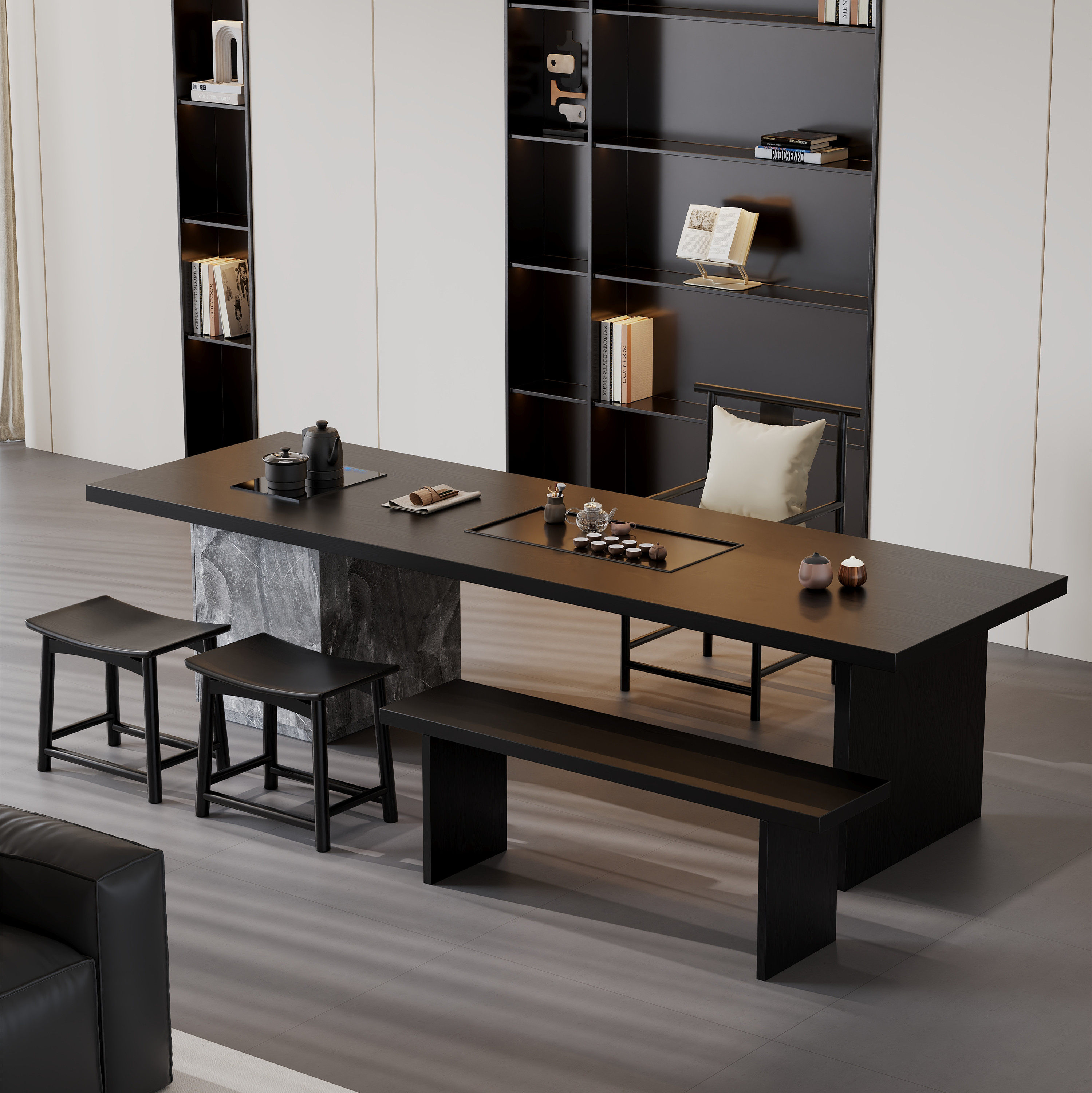 意式 极简阳台小茶桌家用客厅高端实木大板茶台轻奢现代简约泡茶桌