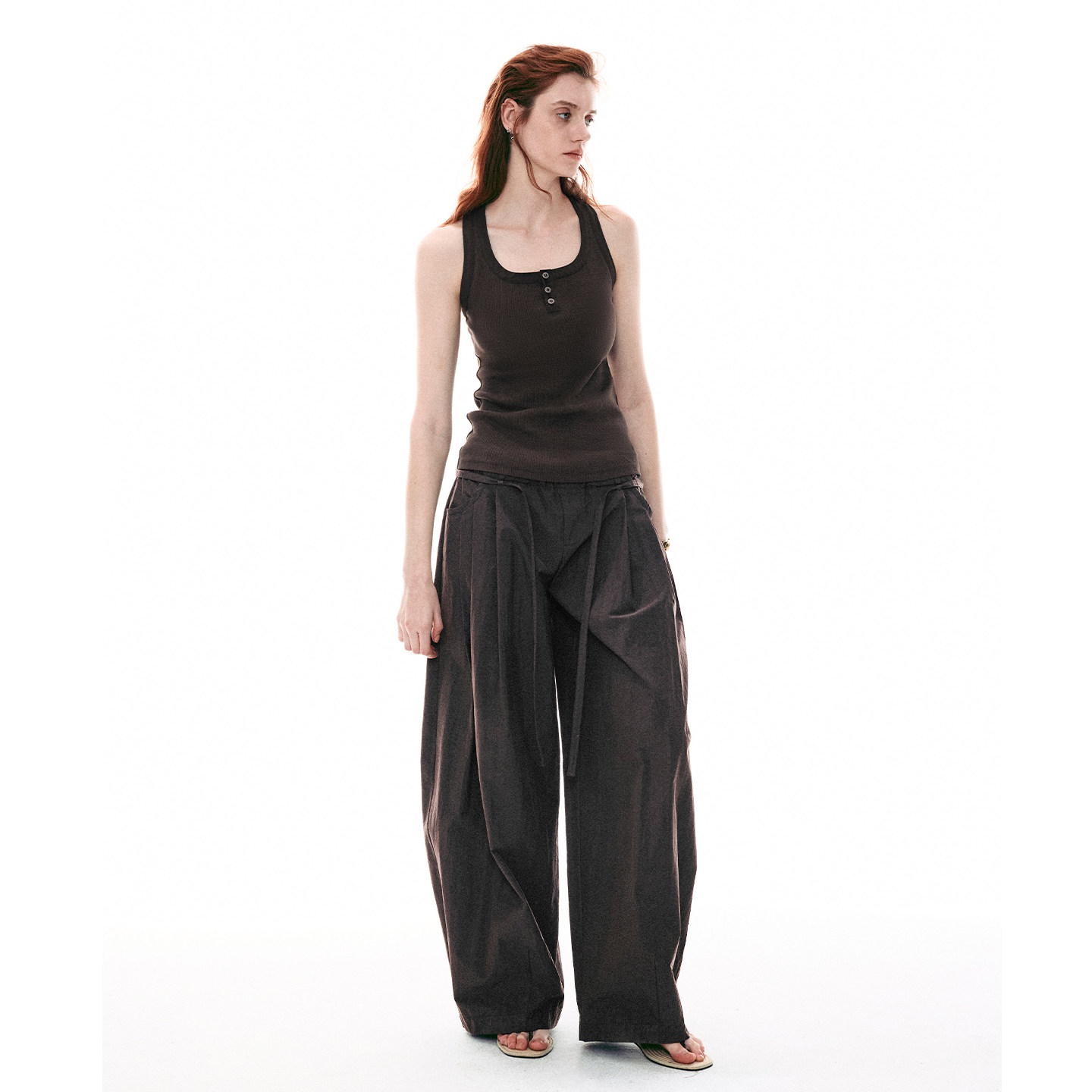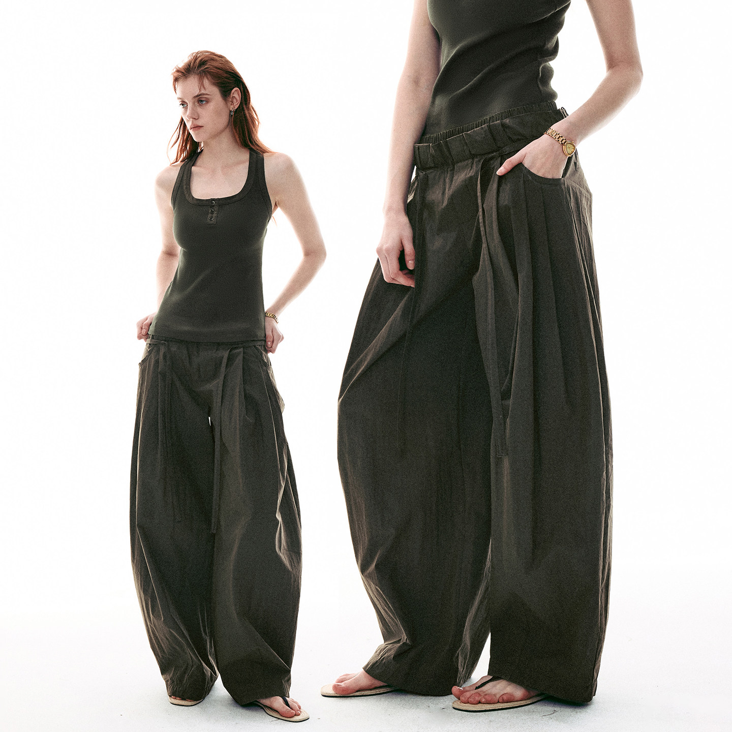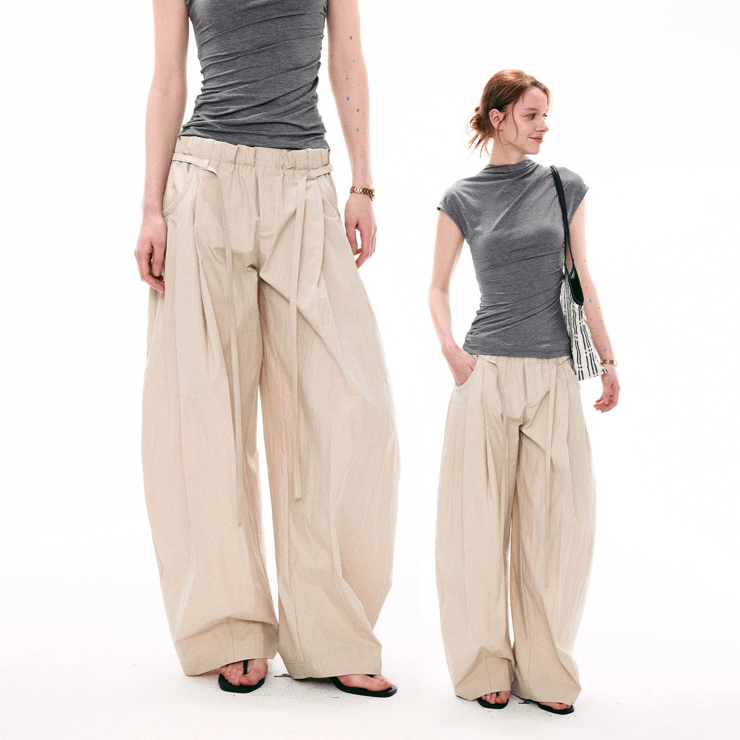 盐缩皱感斜纹双腰阔腿散步山体休闲运动裤 26SS法式 MOMENT SINGLE