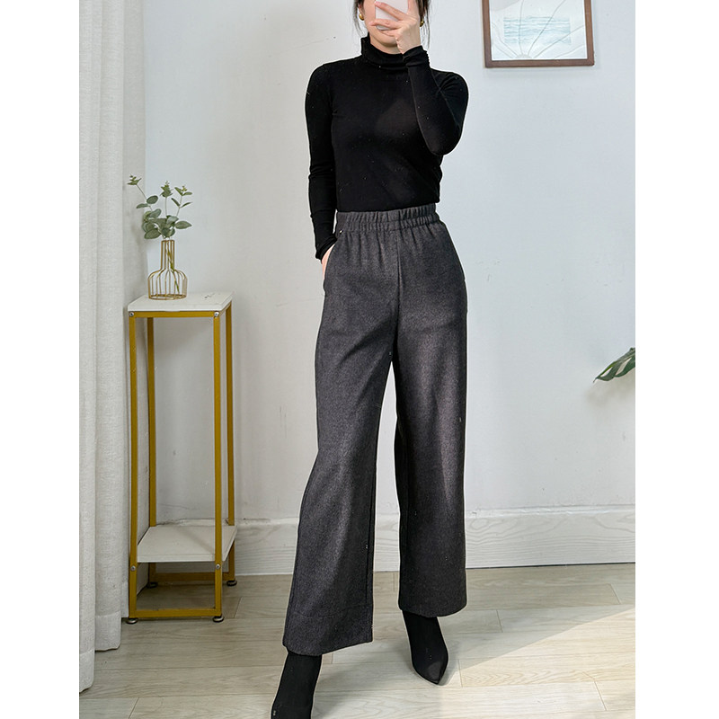 新款 腔调十足 女26秋冬季 600g加厚宽松休闲九分奶奶裤 羊毛阔腿裤