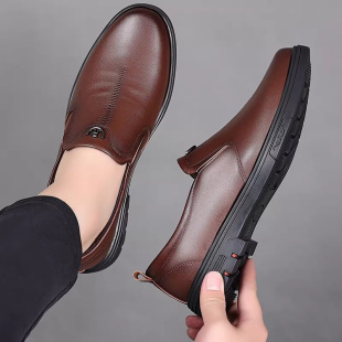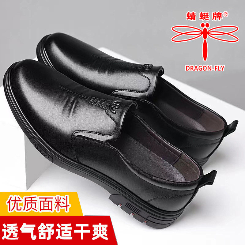 男士 爸爸鞋 新款 英伦软皮软底中年男鞋 真皮商务休闲正装 蜻蜓牌皮鞋
