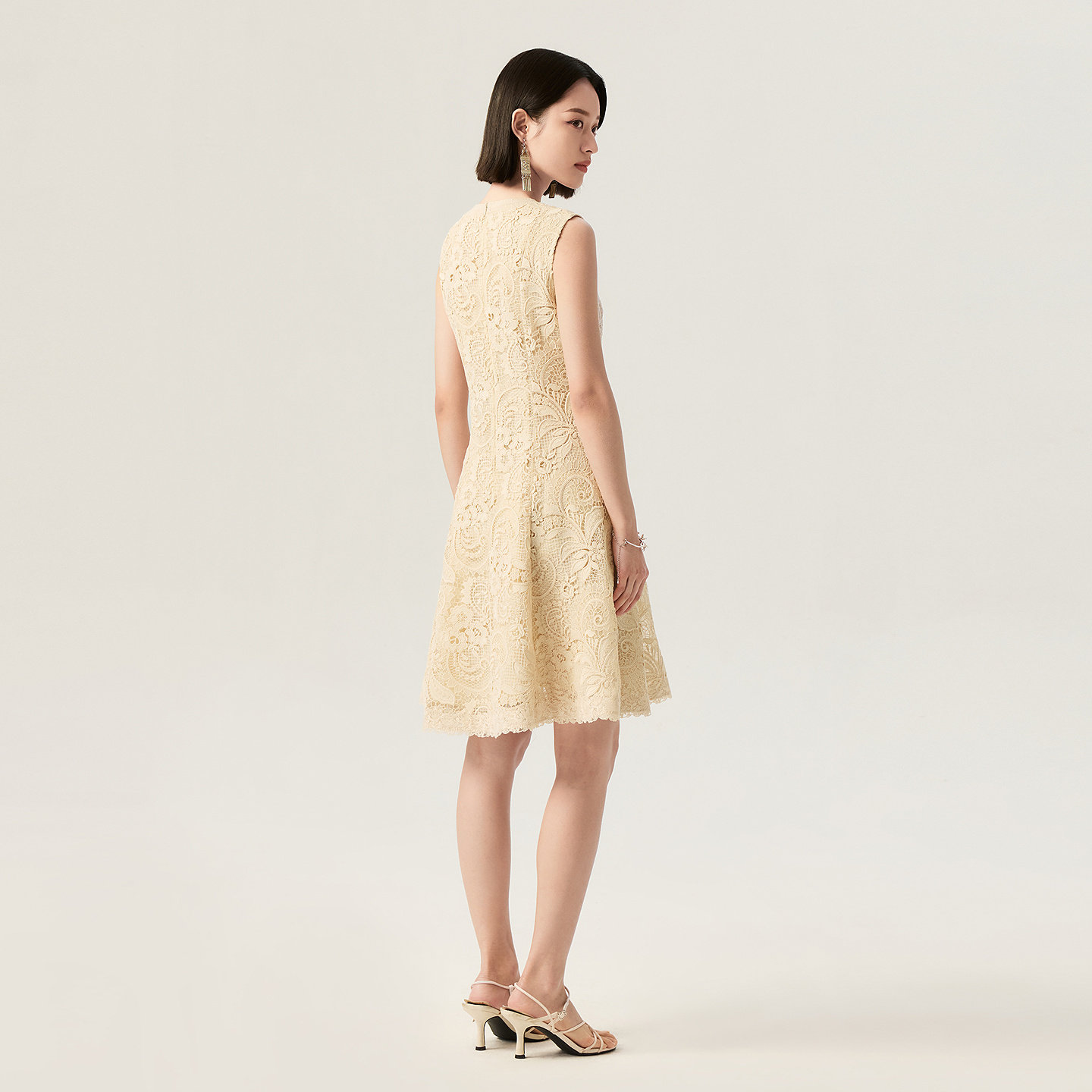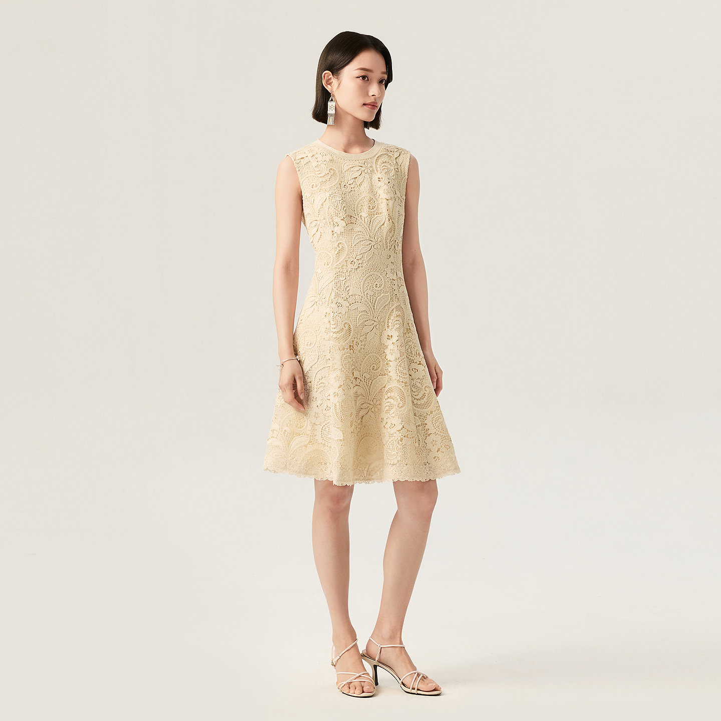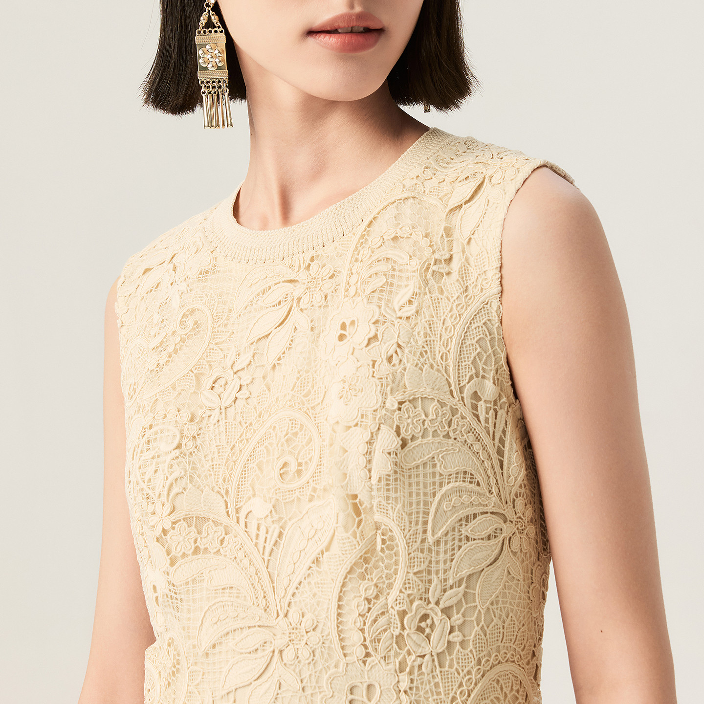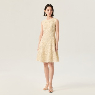 收腰连衣裙 蕾丝无袖 VGRASS维格娜丝26夏季 重工镂空水溶绣花法式