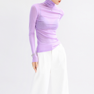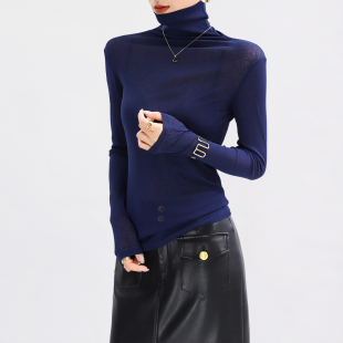 女高端 内搭网纱叠穿打底衫 高领蓝色高级感上衣超好看洋气修身 薄款