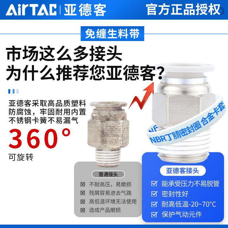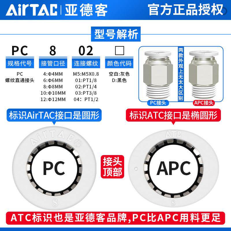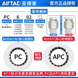 亚德客气动螺纹直通pc气管快插快速接头APC4