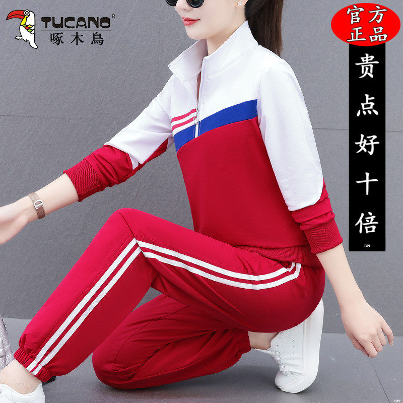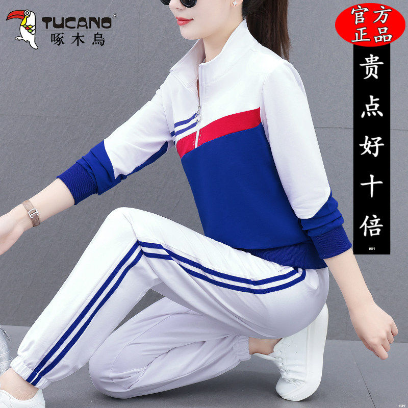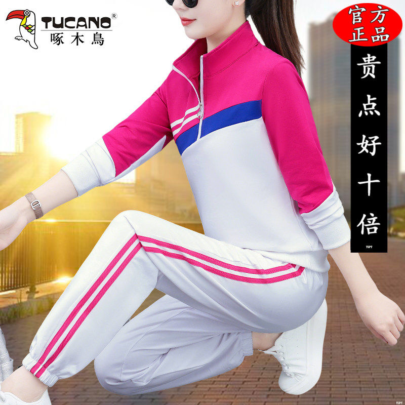 洋气跑步立领长袖 时尚 两件套 春秋2026新款 啄木鸟高档休闲运动套装