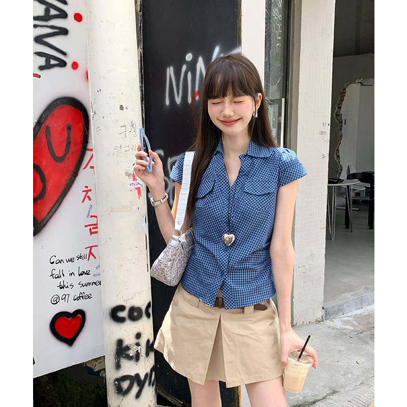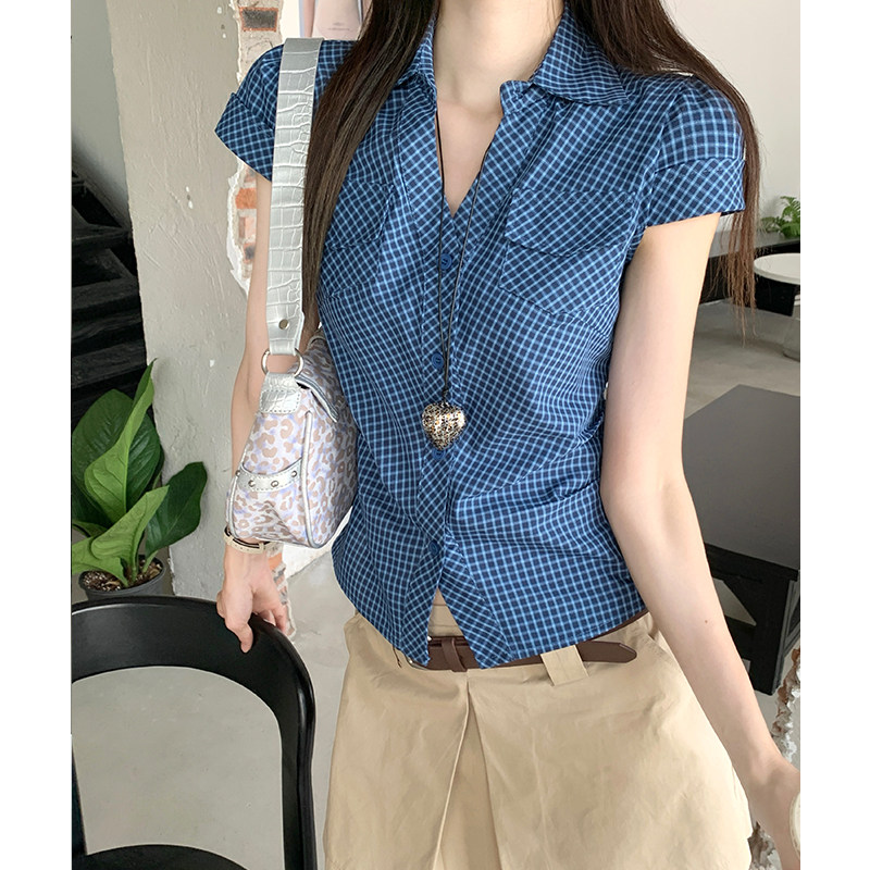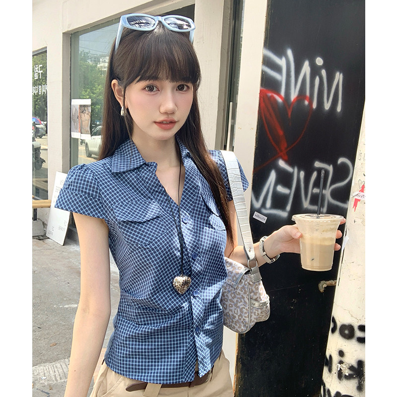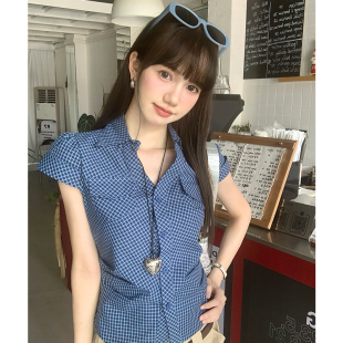 小矮个子150cm显高女装 衬衣短款 加小码 格子衬衫 收腰 XXXS短袖 夏装