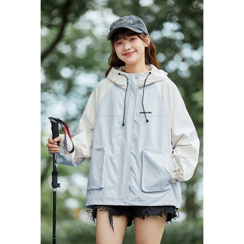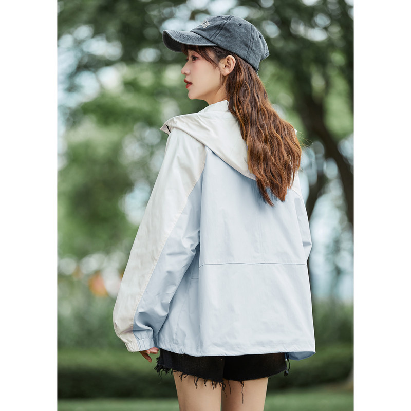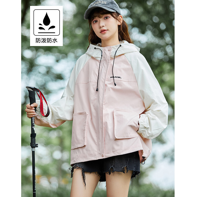 外套女冲锋少年上衣春秋连帽撞色夹克宽松z 工装 唐狮2024秋季 新款