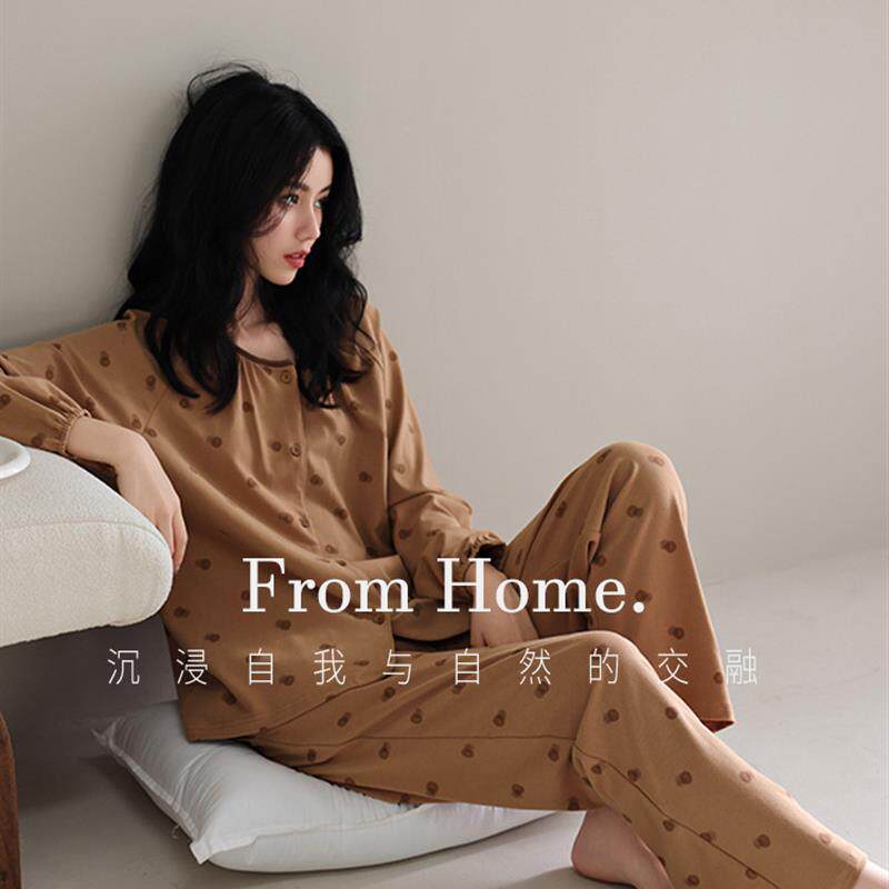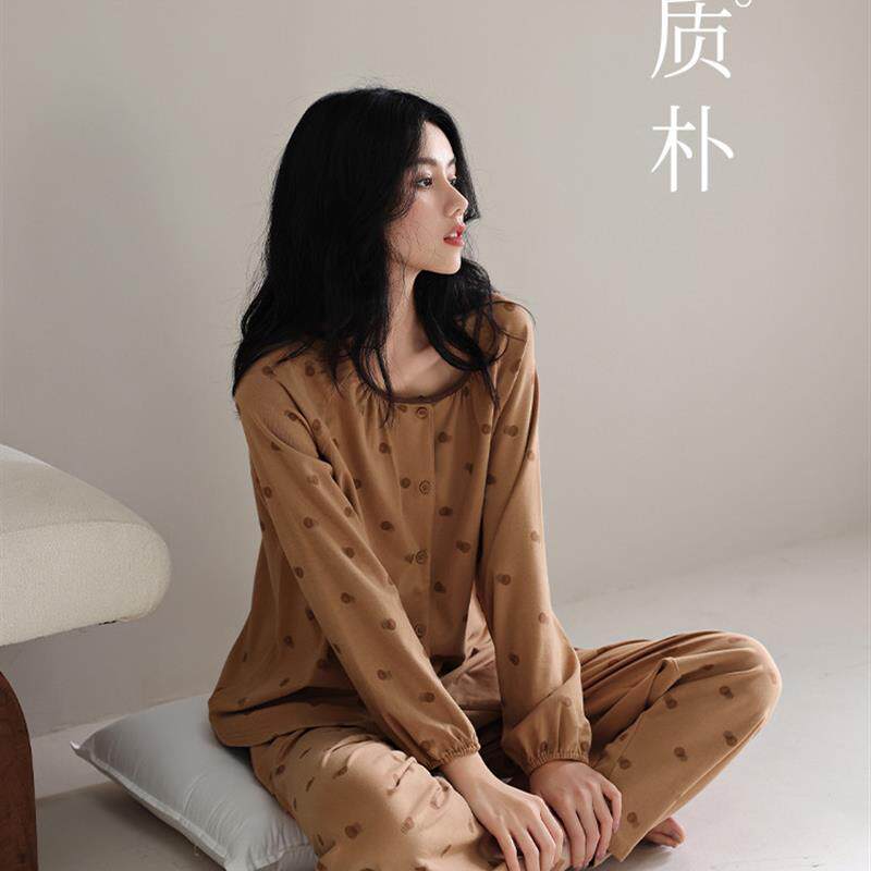 棉睡衣及家装 套装 新款 圆领长袖 外穿 高端大码 2025春秋女式