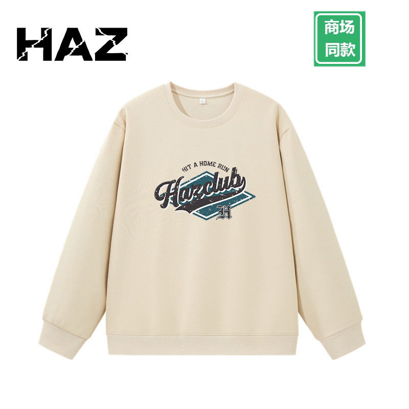 复古字母印花圆领卫衣男女同款 宽松学院风上衣白色