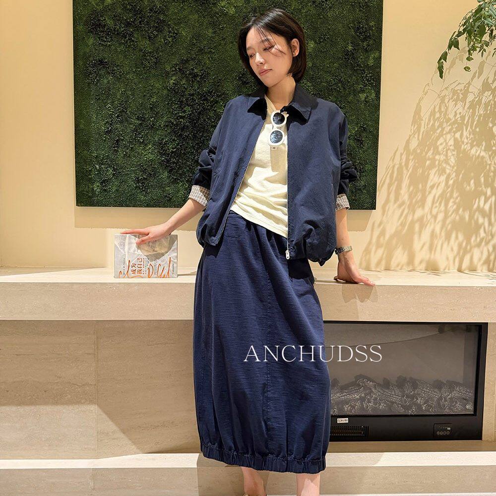 开叉半身裙 极简松紧腰100%棉中长款 一条基础又高端 半身裙