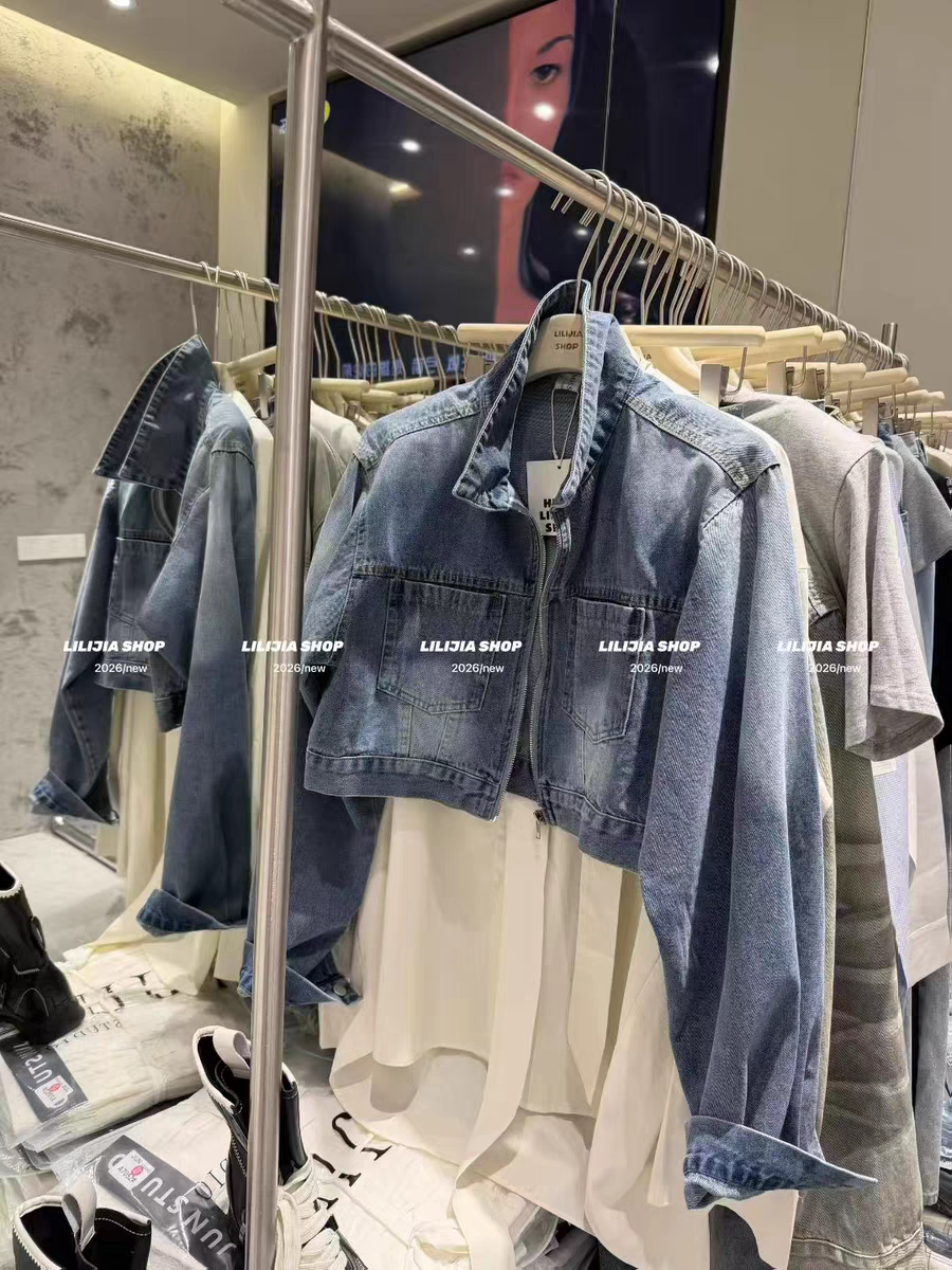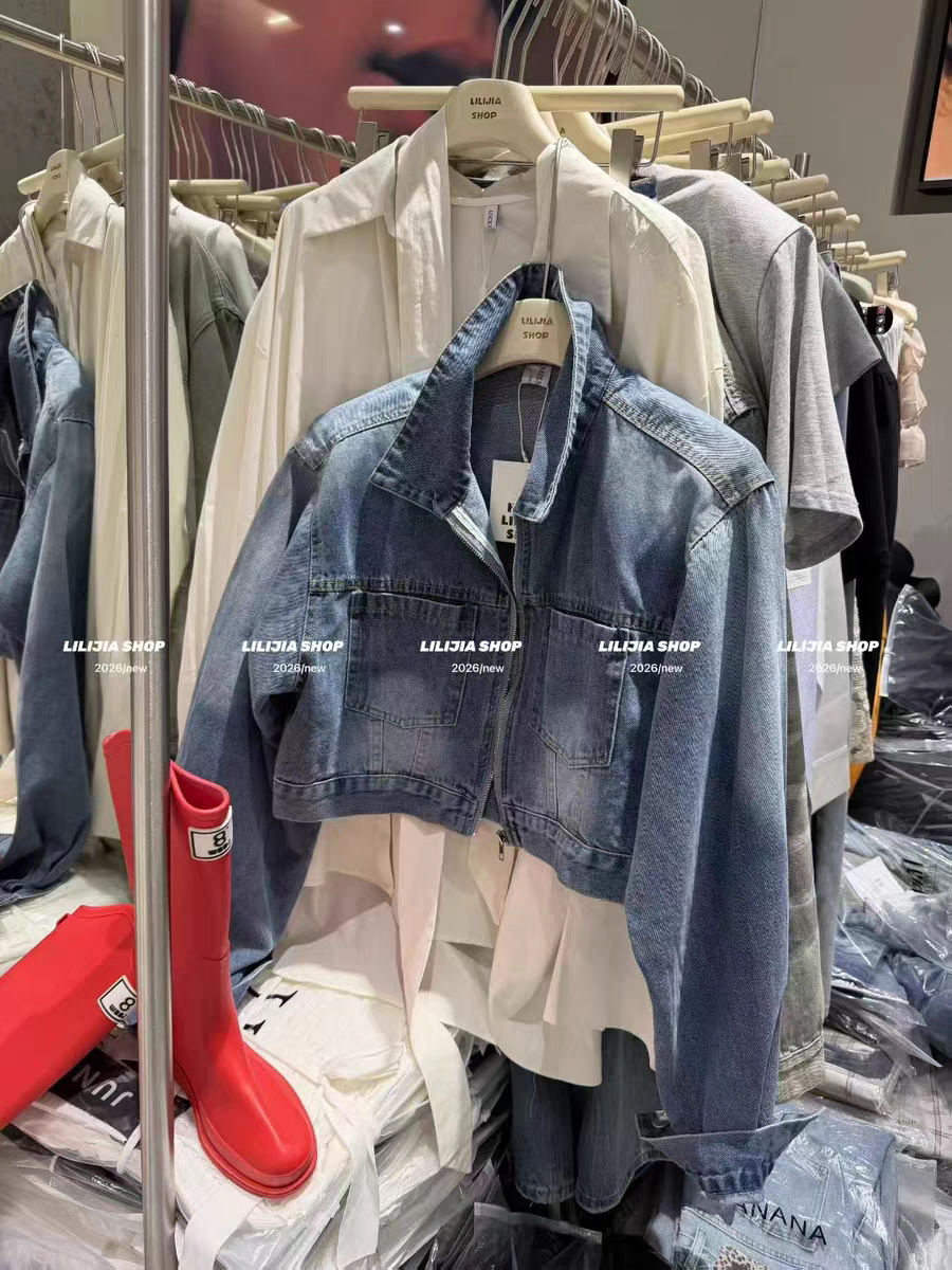 上衣 小个子辣妹高街设计感拉链时尚 短款 牛仔外套2026春季