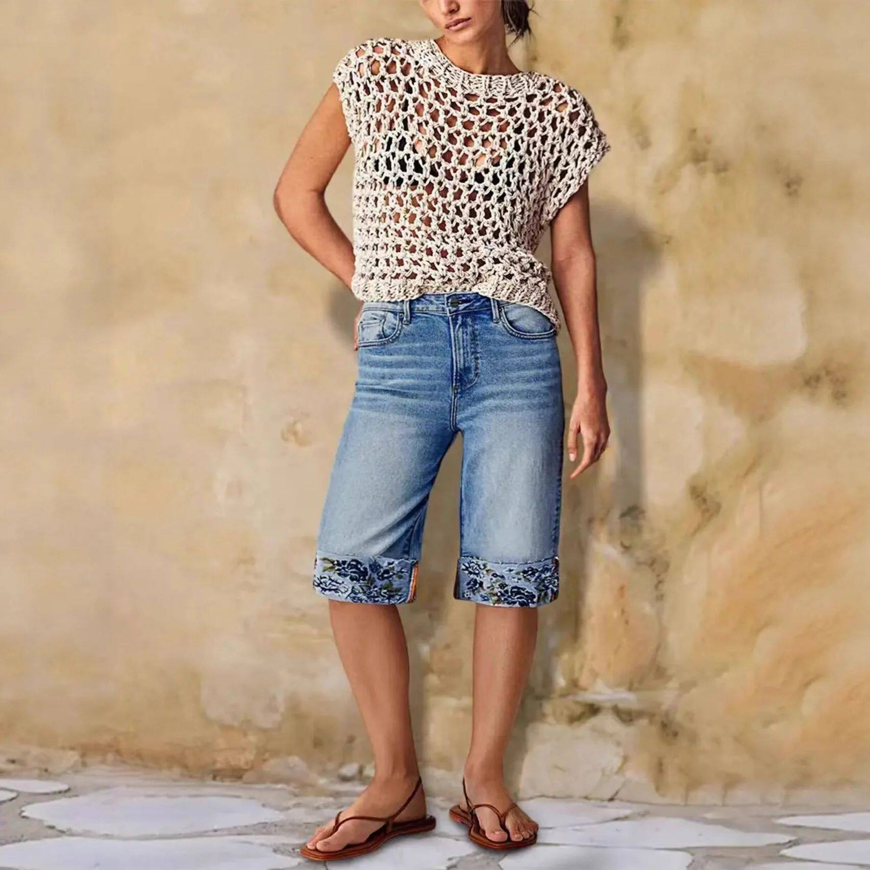 Embroidered Fashionable Elastic Women Comfortable Casual