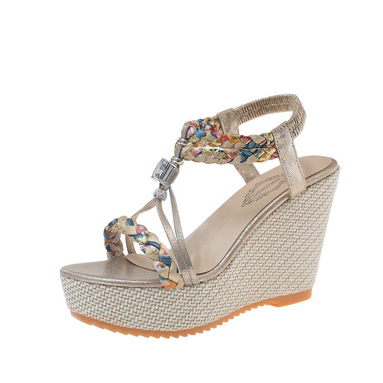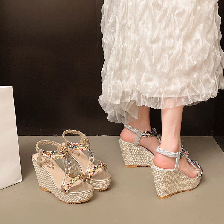 露趾罗马凉鞋 气质夏季 女2026串珠厚底跨境大码 欧美坡跟凉鞋 新款