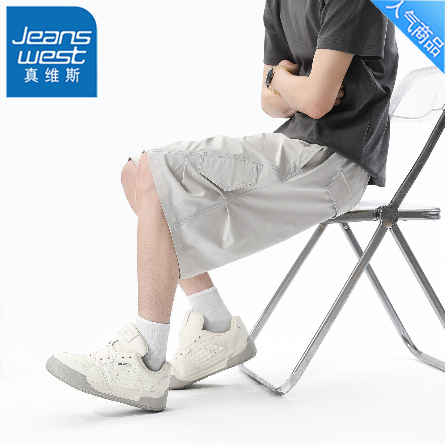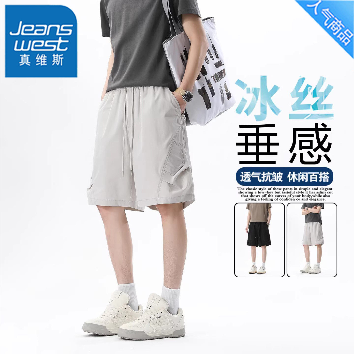 男士 短裤 夏季 2026新款 真维斯美式 宽松休闲五分裤 褶皱冰丝工装