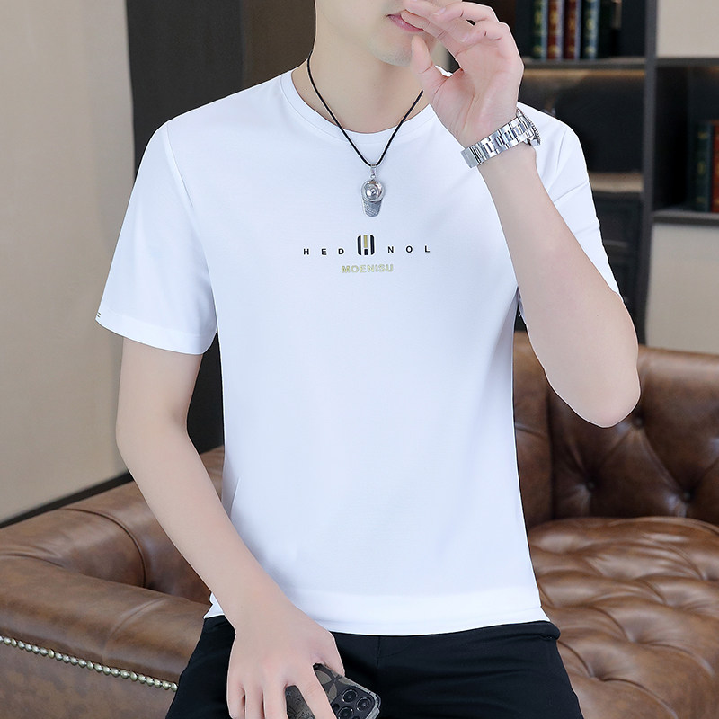 T恤男2026夏季 速干男士 新款 薄款 上衣帅 潮流圆领修身 高端白色短袖