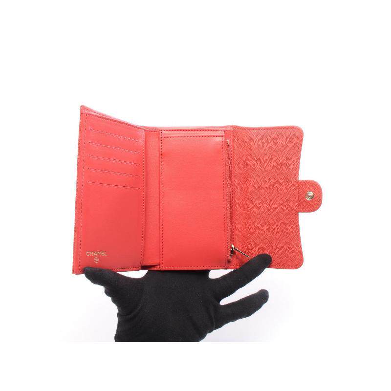 中古Chanel香奈儿女A级95新trifold wallet三折钱包牛皮长钱包