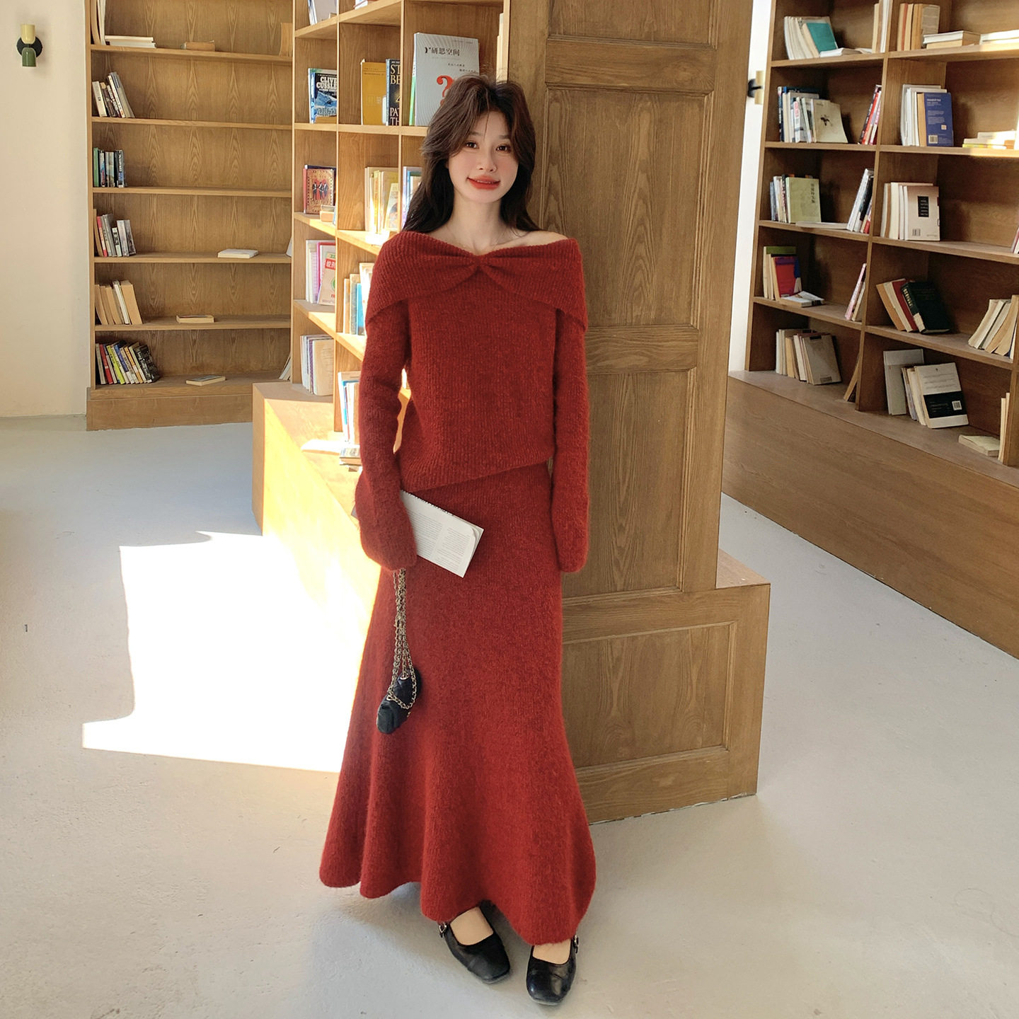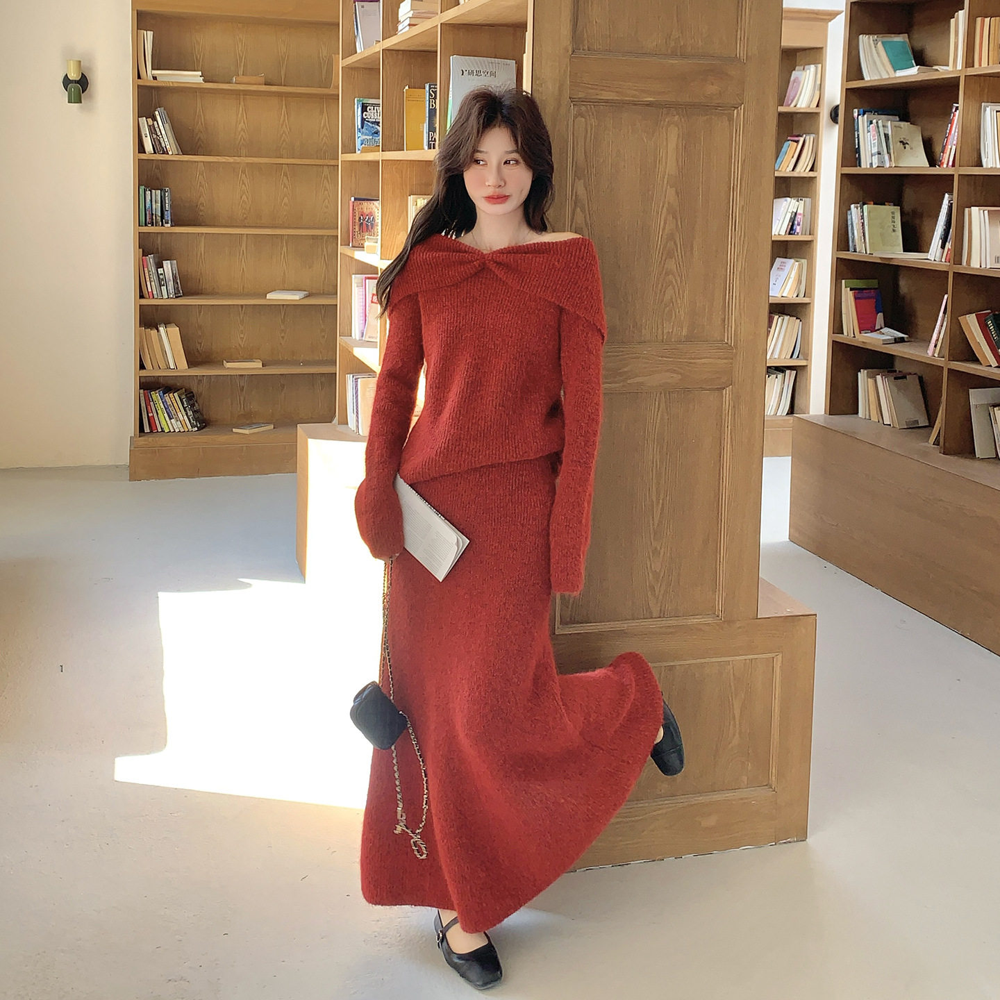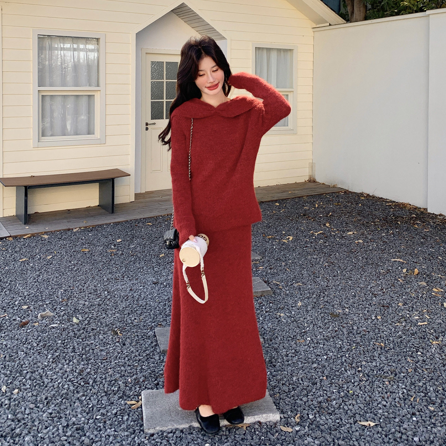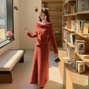 裙2026春款 官方实拍温柔风一字肩针织套装 柔美 故事面料女装 罗芬