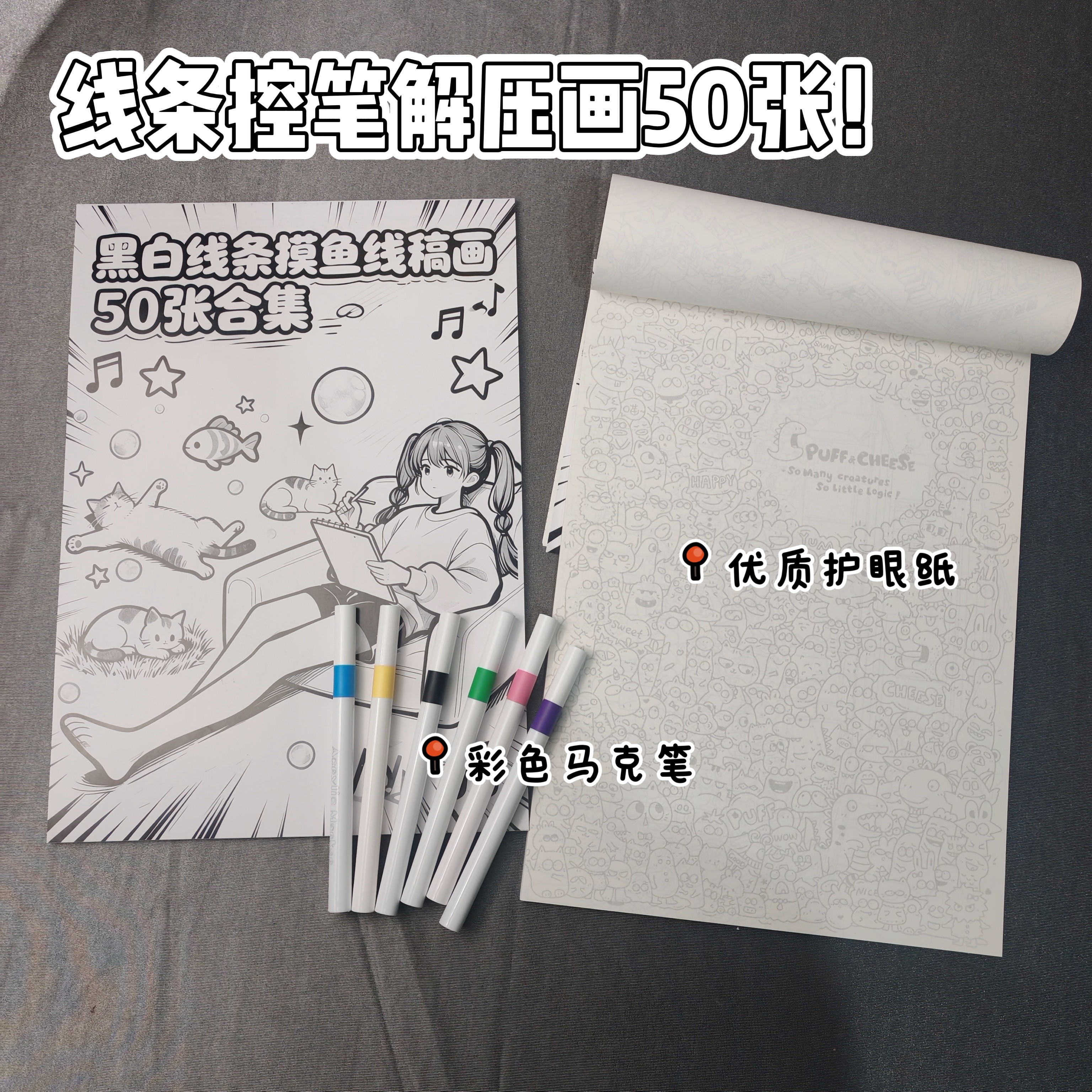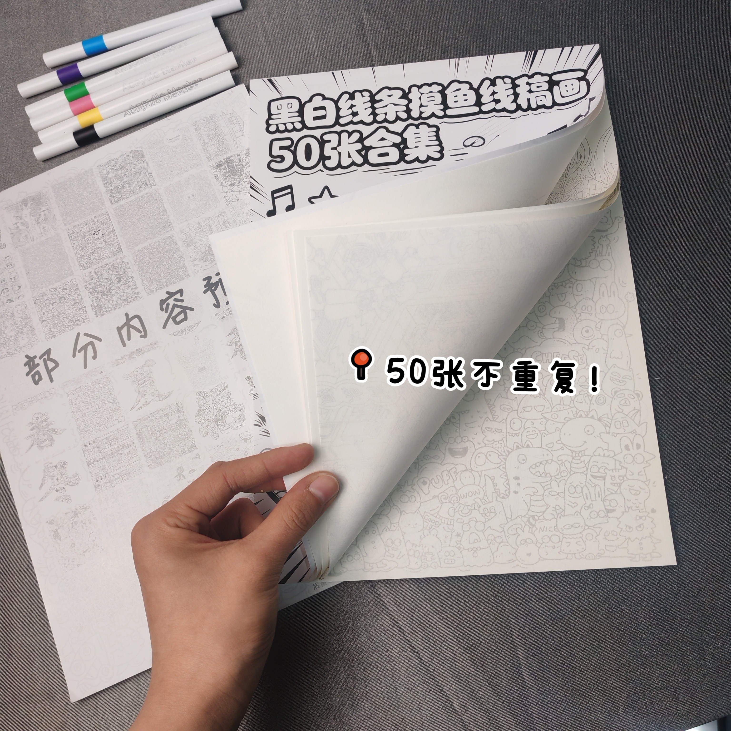摸鱼线条画本简笔画控笔练习画稿热门合集练习临摹图整本 潮鱼