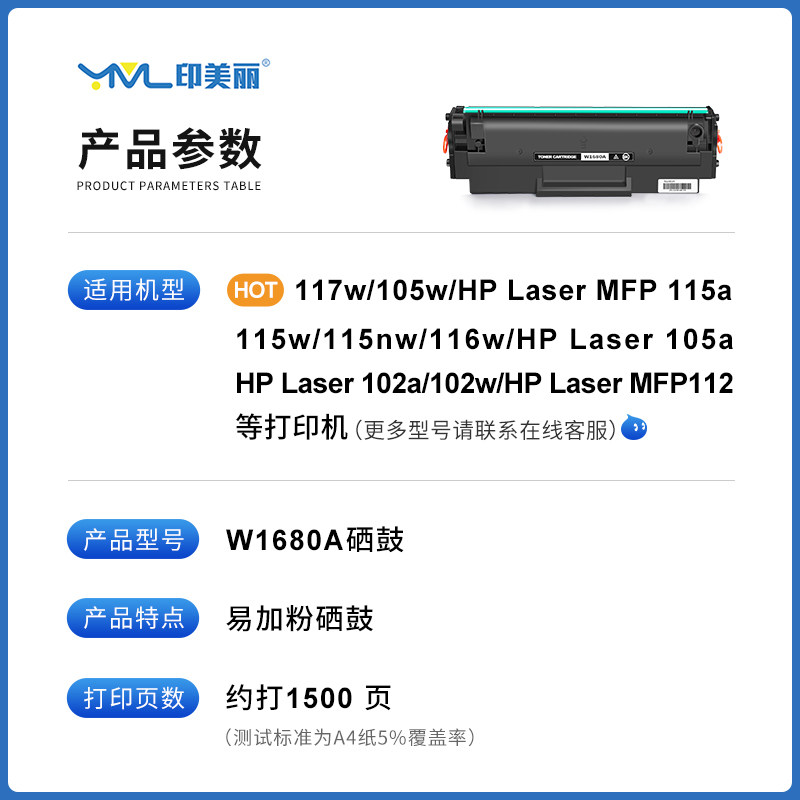 116w 105a 102a 晒鼓碳粉盒黑色可加粉 适用HP惠普117w硒鼓115a 112a激光打印机专用墨盒W1680A非原装