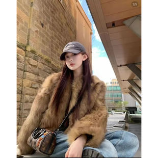 环保皮草短款 狐狸毛高级感毛茸茸保暖上衣显瘦加厚大衣 外套女冬季