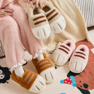 包跟亲子家居室内保暖鞋 女童冬季 女孩 儿童棉拖鞋 红豆可爱猫爪拖鞋