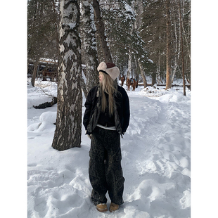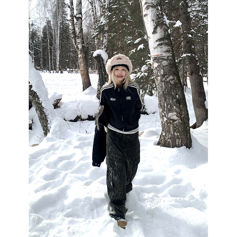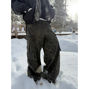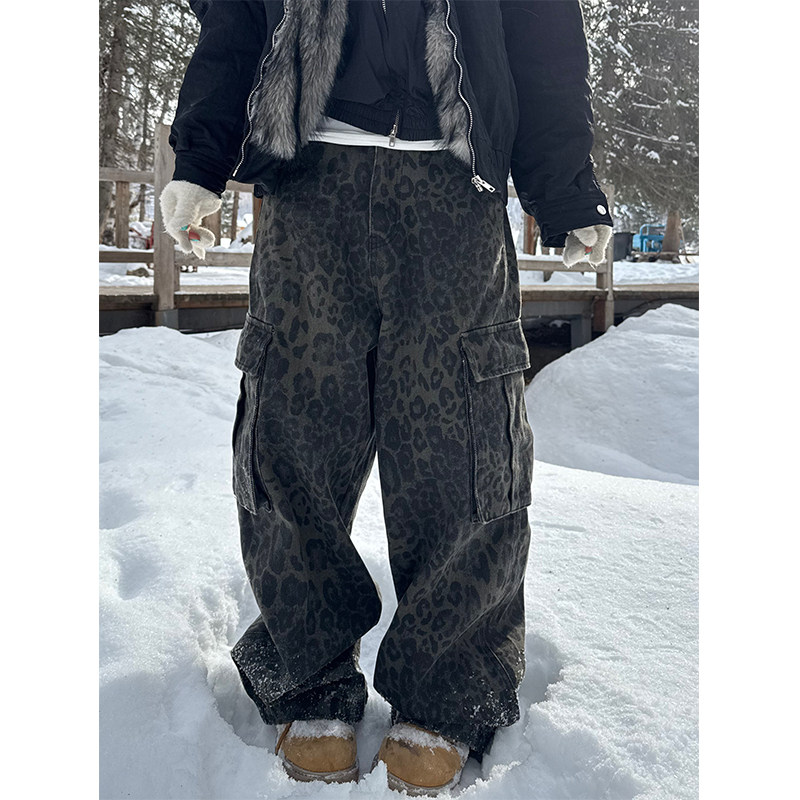 男女宽松休闲百搭直筒长裤 JMJ 裤 复古大口袋街头豹纹阔腿工装 美式