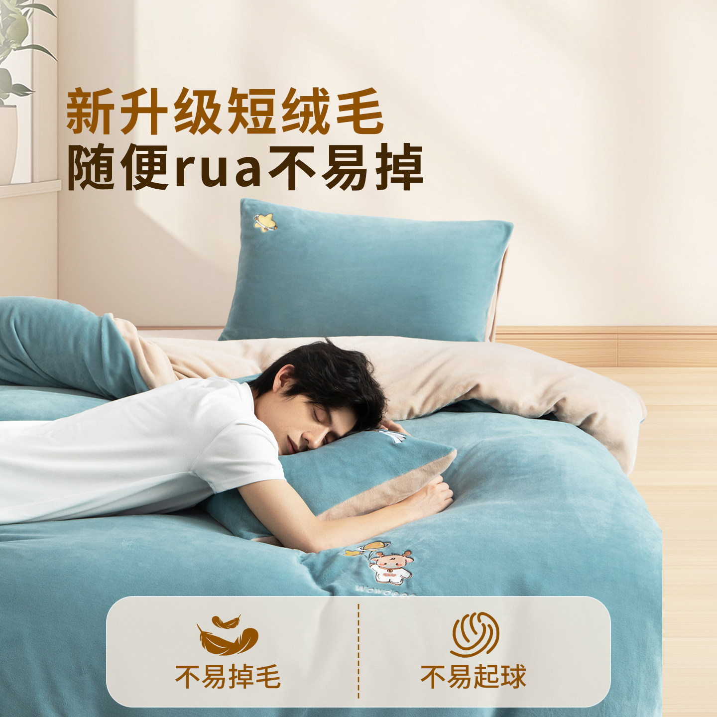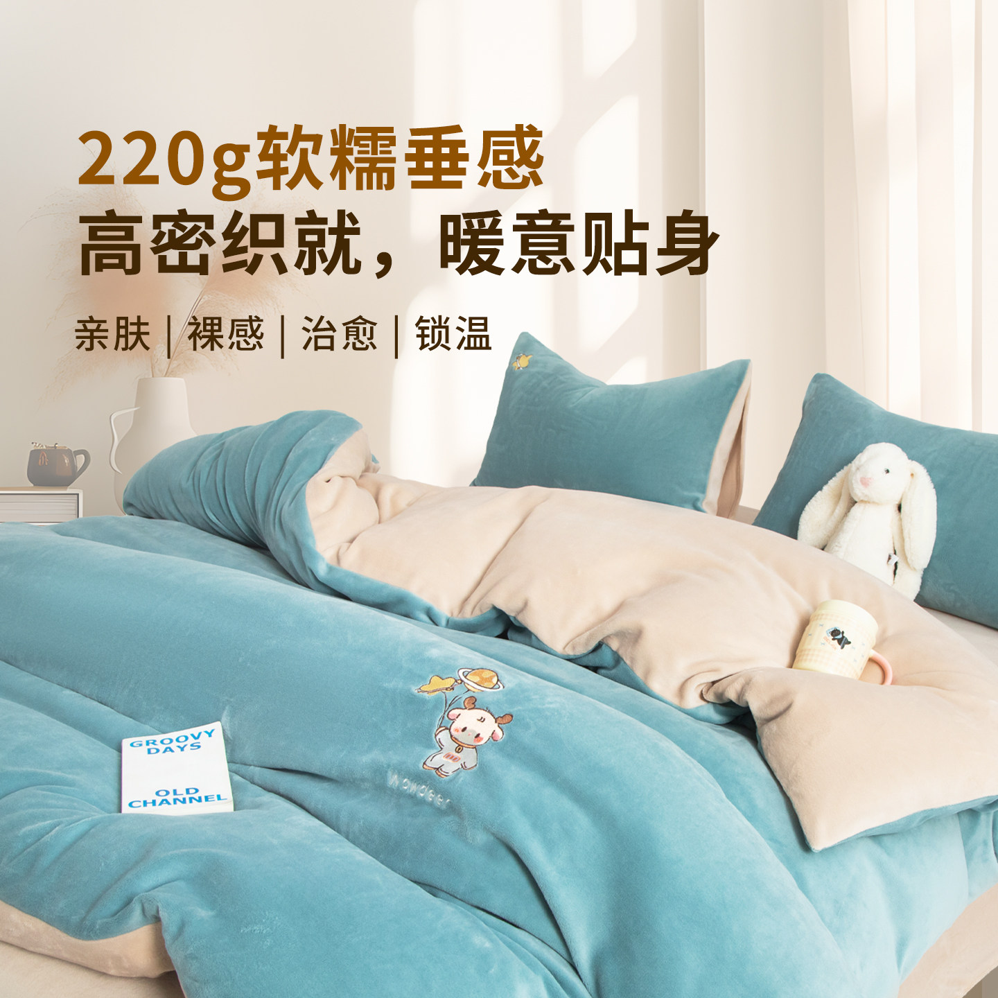 神气小鹿牛奶绒四件套加厚床单暖绒套件床上三件套毛绒秋冬季 被套