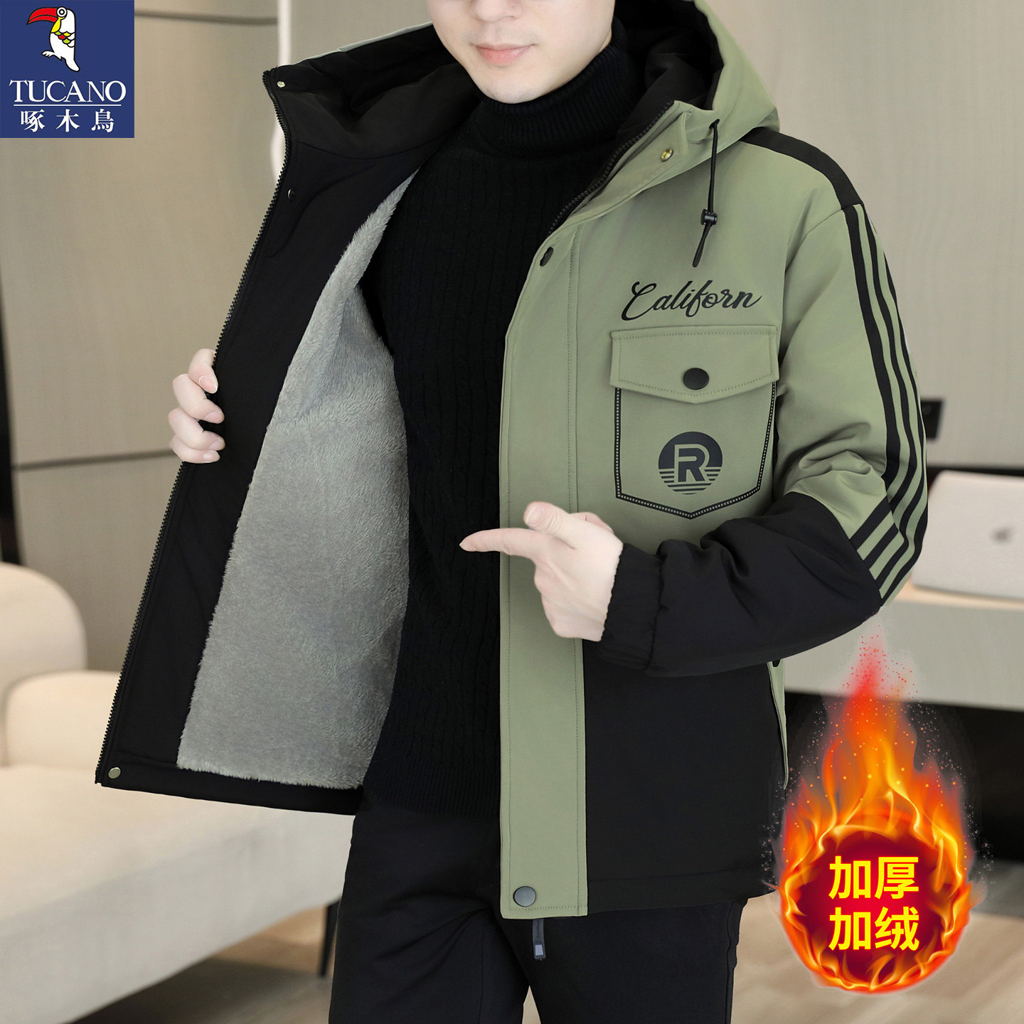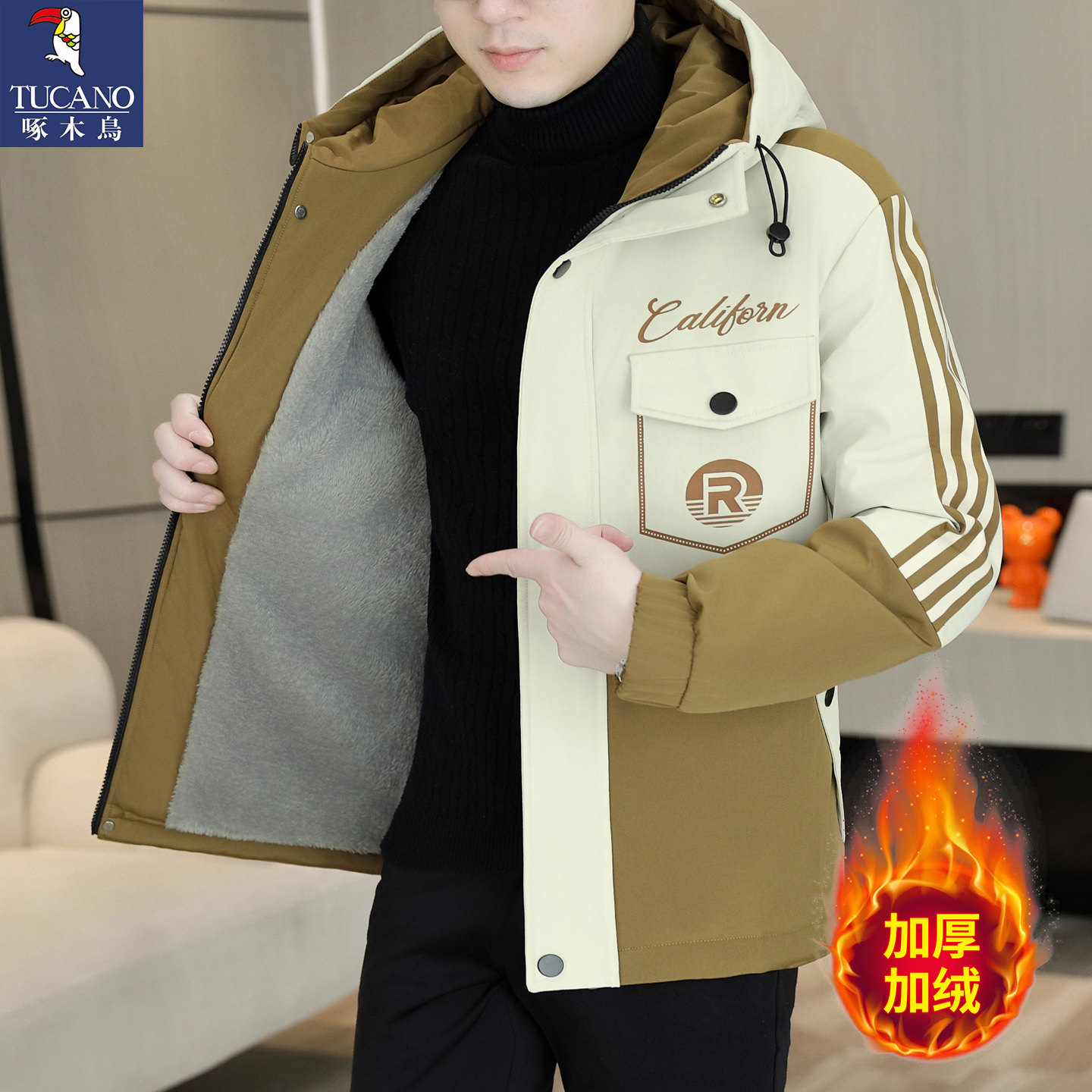 休闲保暖中年爸爸装 新款 棉衣外套 可拆连帽棉服2025冬季 红蜻蜓男士