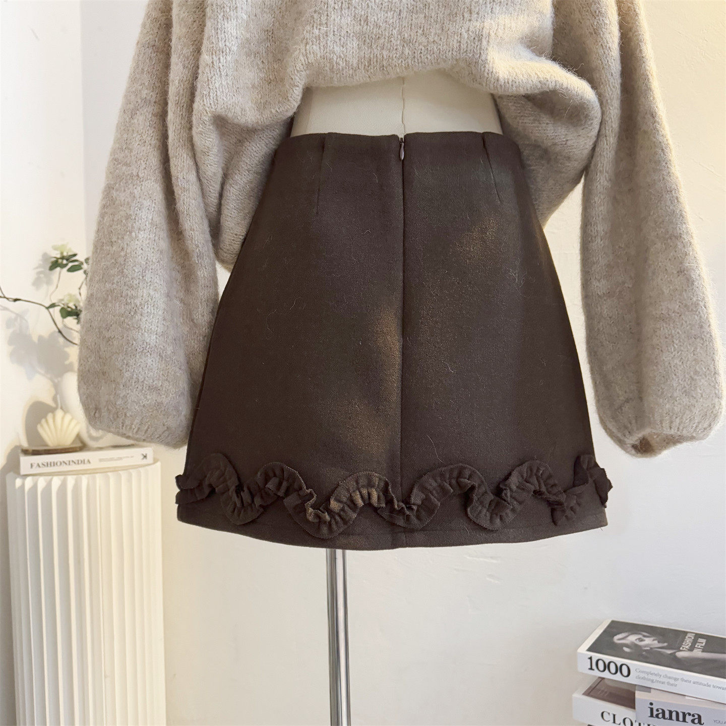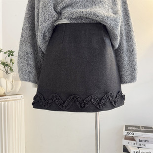 灰色毛呢半身裙女2025秋冬款 高腰显瘦A字短裙宽松小个子包臀裙子