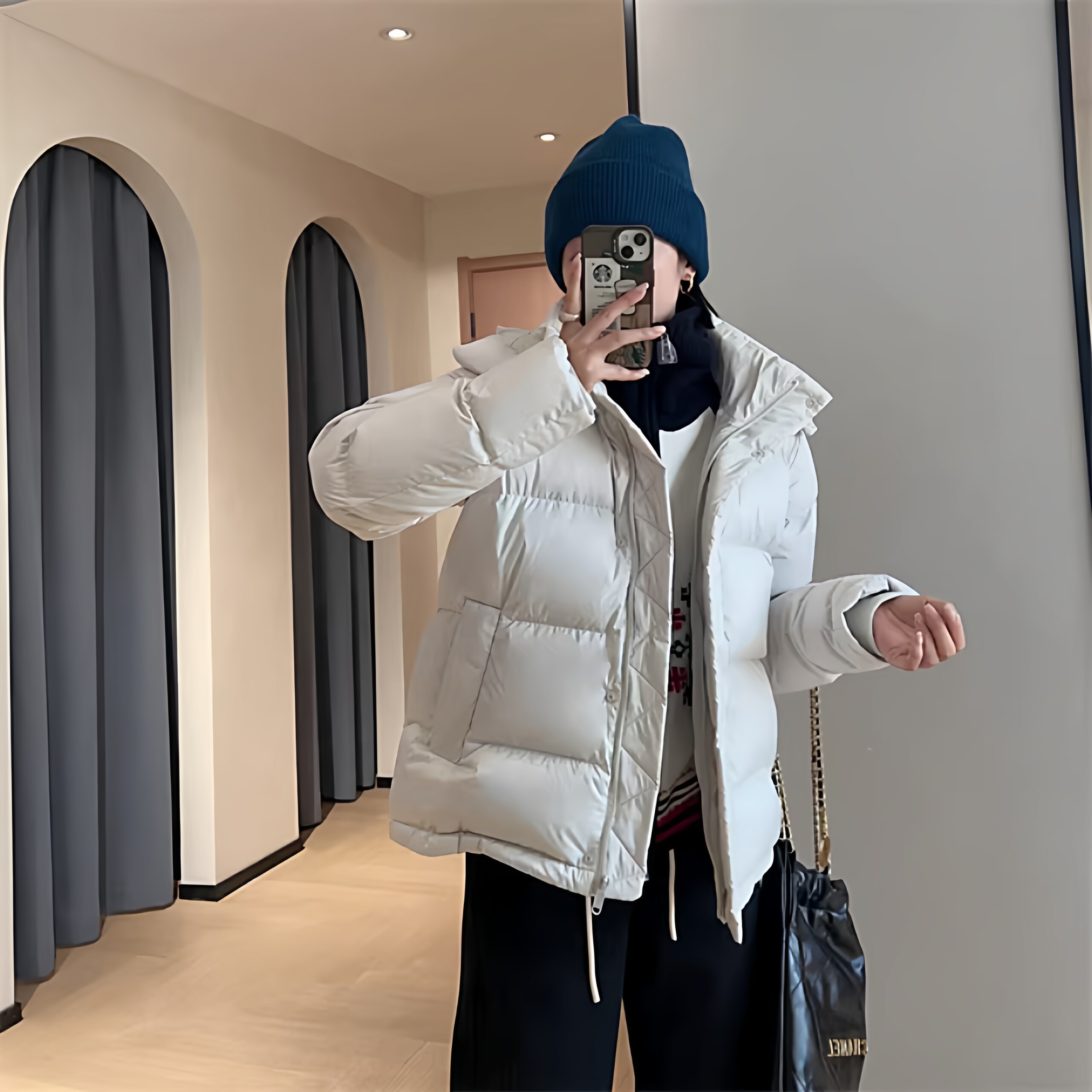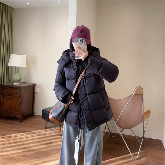 收腰连帽冬季 加厚修身 外套白色五格露露 2025新款 鹅绒羽绒服女短款