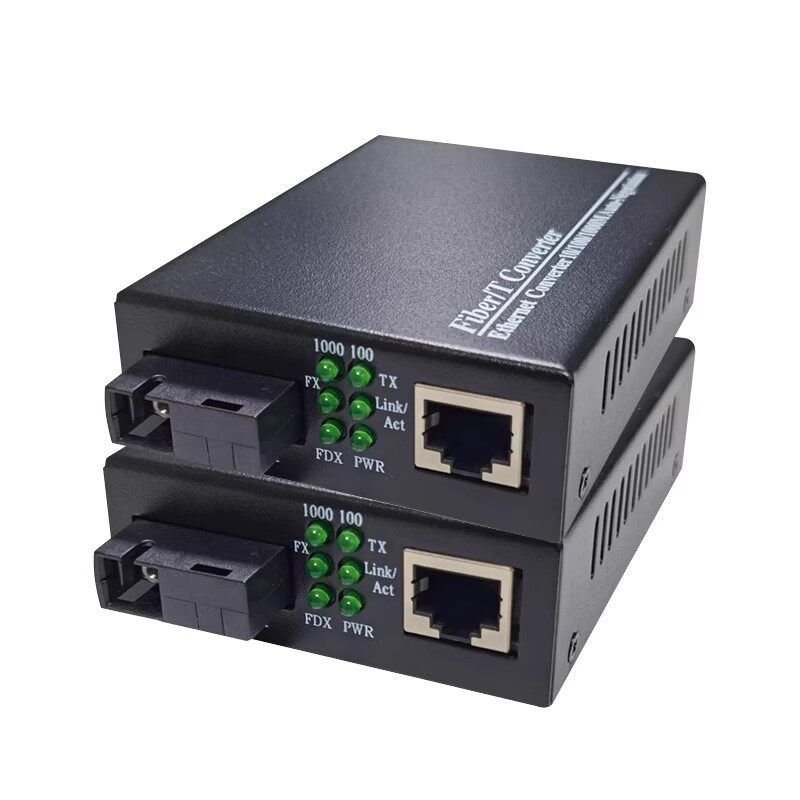 千兆光纤收发器单模单纤百兆光纤收发器一对SC光纤线转网线接口转换器网络视频监控信号电源光纤光电转换器